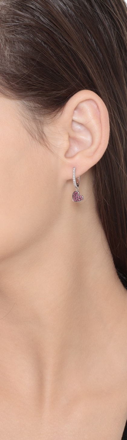 Boucles d’oreilles or blanc 18k cœur avec diamants et rubis