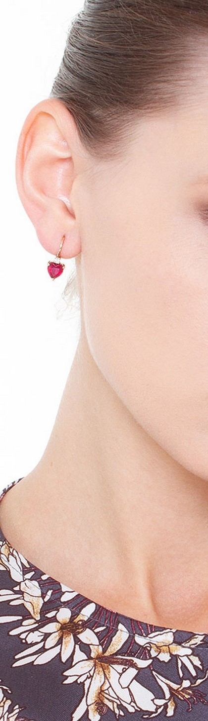 Boucles d’oreilles or rose 18k cœurs avec rubis et diamants