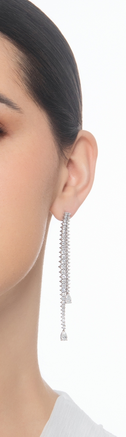 Boucles d'oreilles pendantes en or blanc 18 carats es diamants taille poire GIA