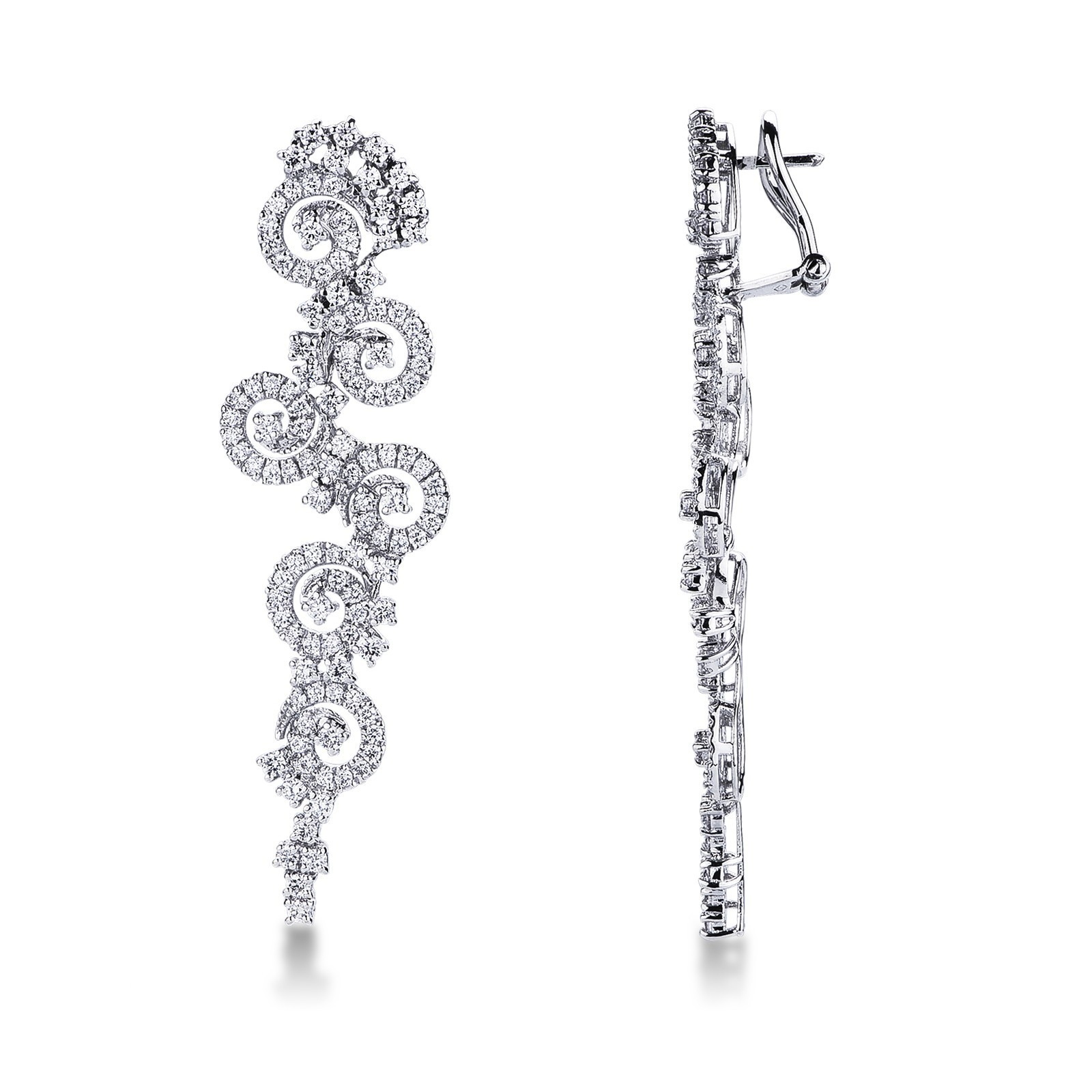 Boucles d’oreilles pendantes en or blanc 18k avec diamants
