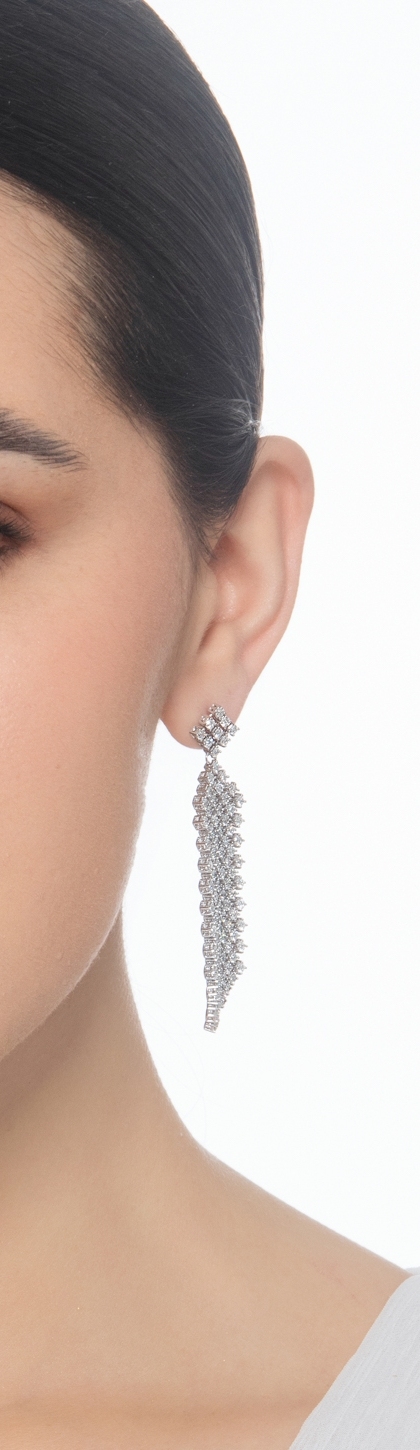 Boucles d’oreilles pendantes en or blanc 18k serties de diamants