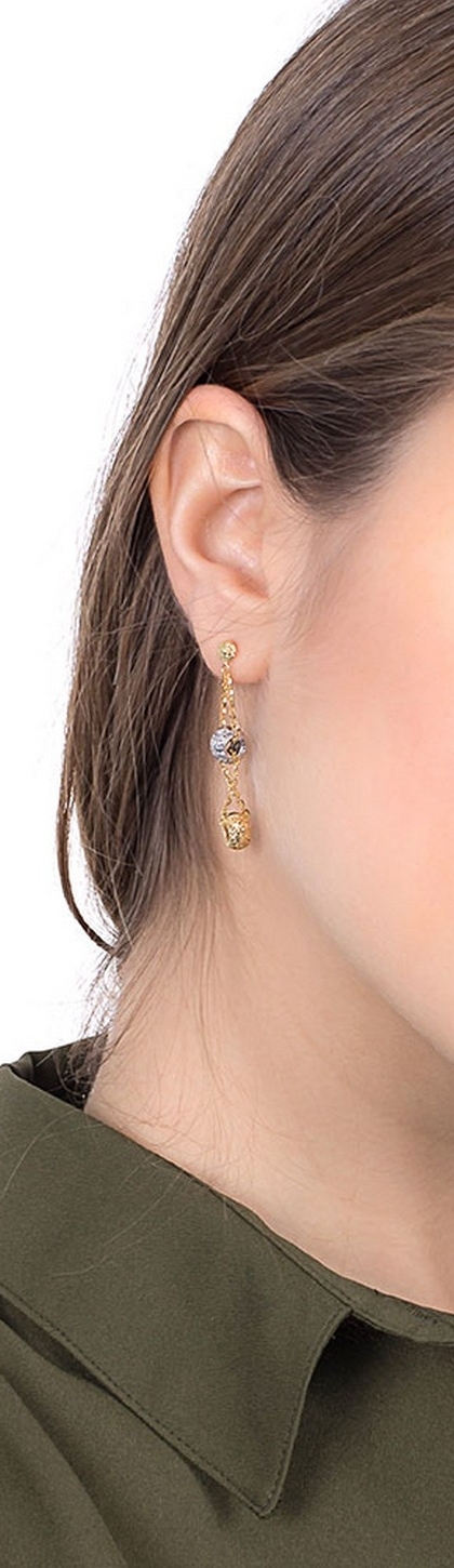 Boucles d’oreilles pendantes en or jaune et blanc diamantées
