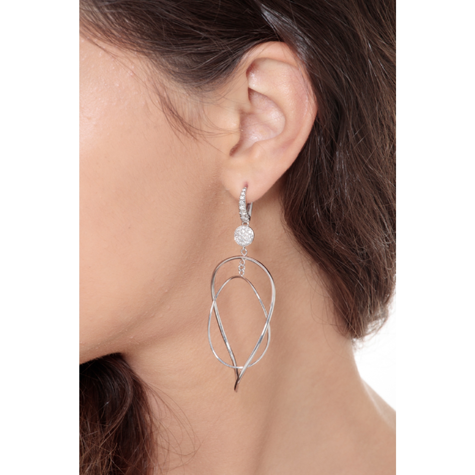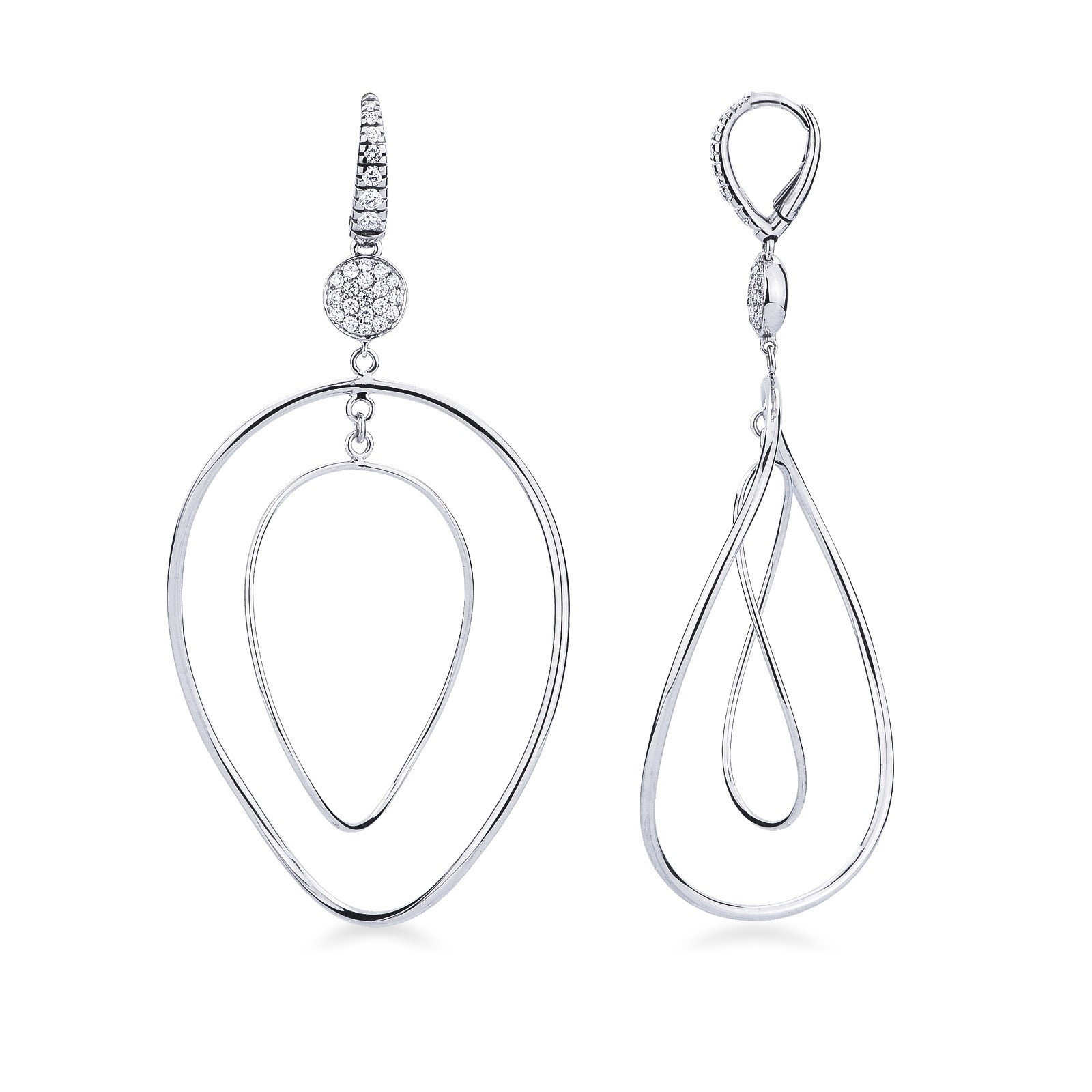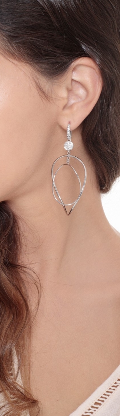 Boucles d’oreilles pendantes ovales en or blanc 18k avec diamants