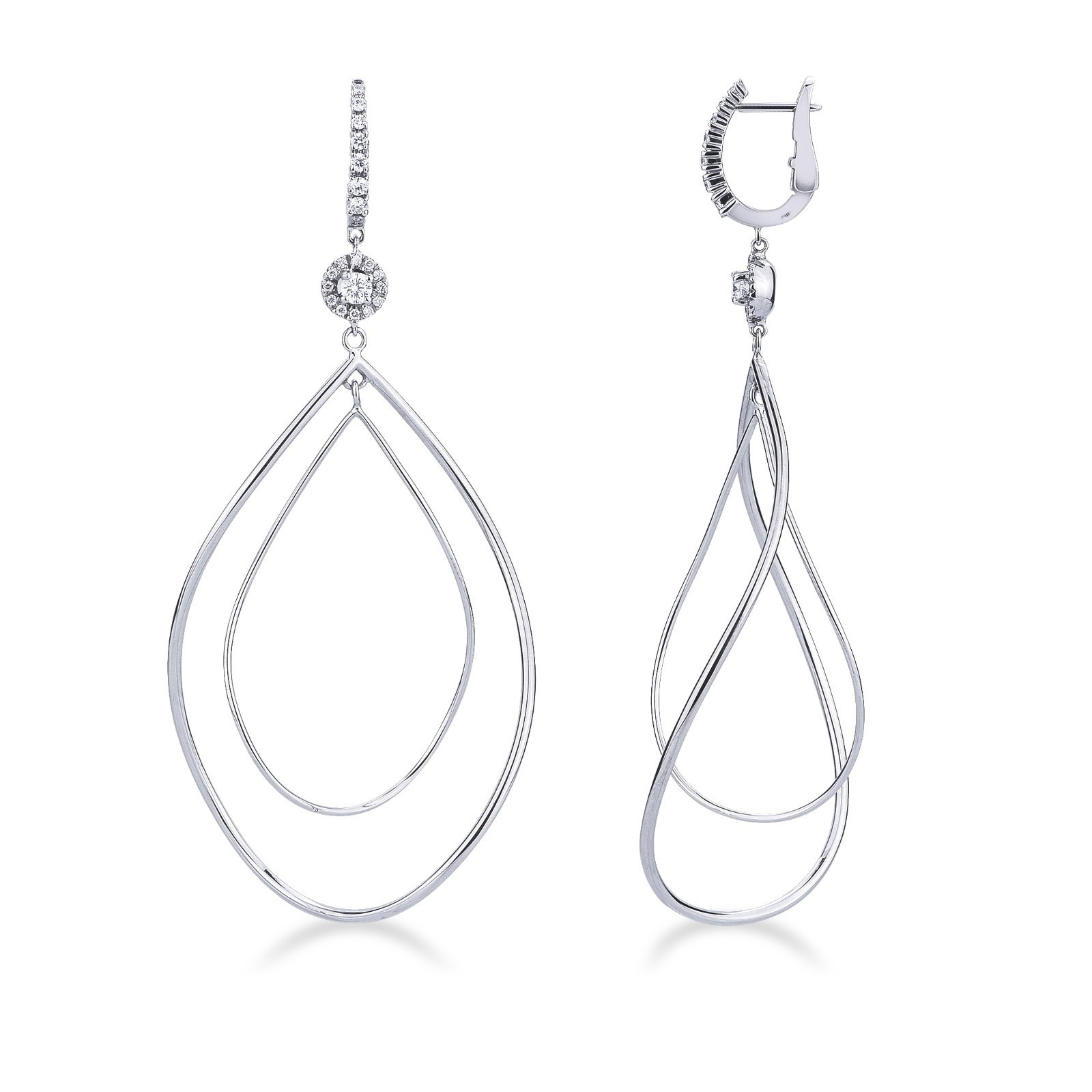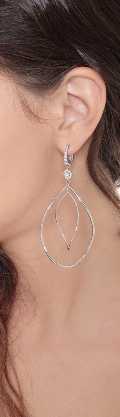 Boucles d’oreilles pendantes ovales en or blanc 750 avec diamants