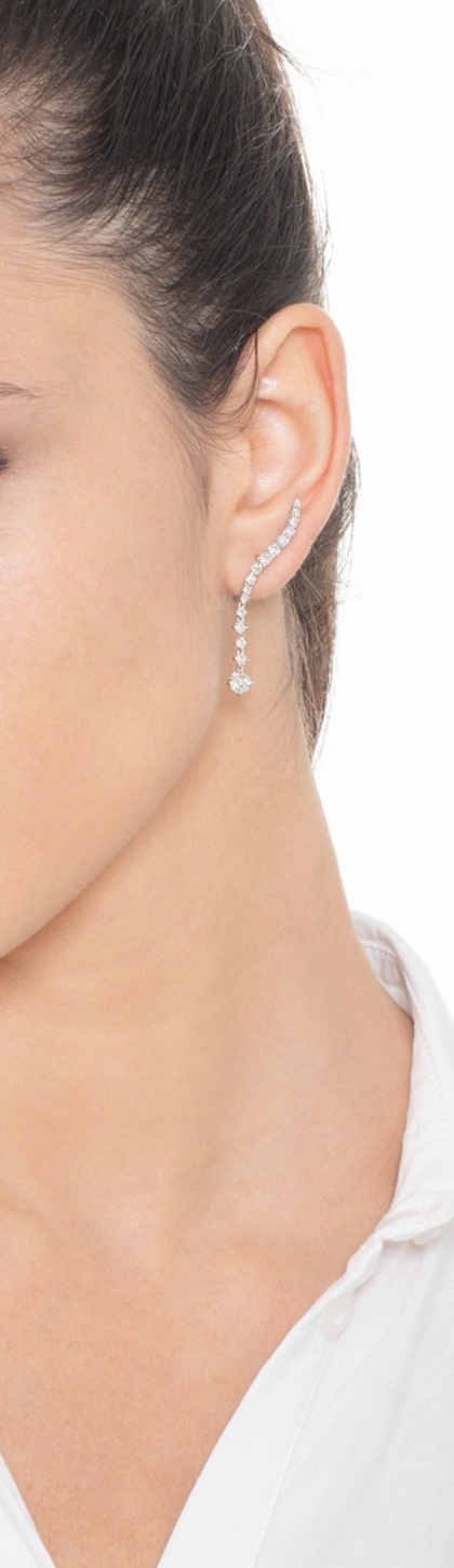 Boucles d’oreilles pendantes souples en or blanc 18k avec diamants