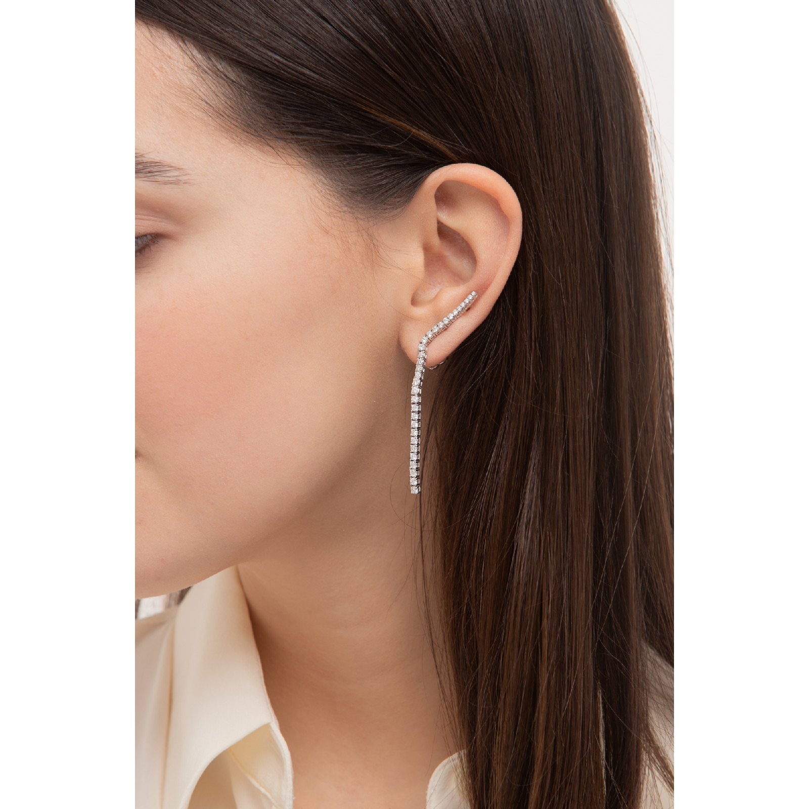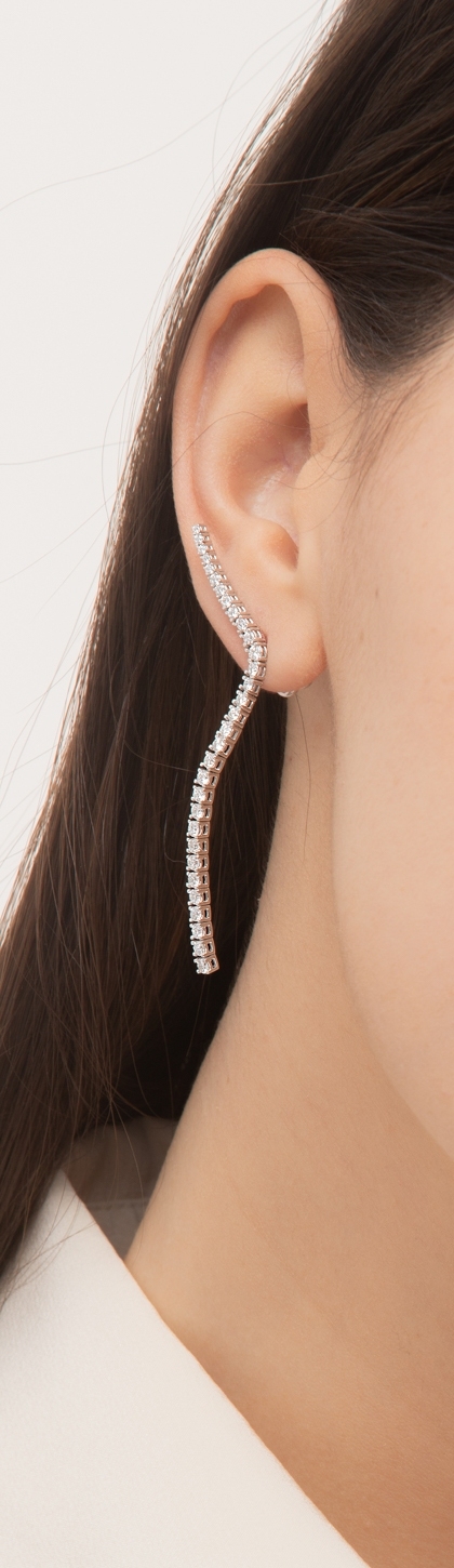 Boucles d’oreilles tennis pendantes en or blanc 18k avec diamants