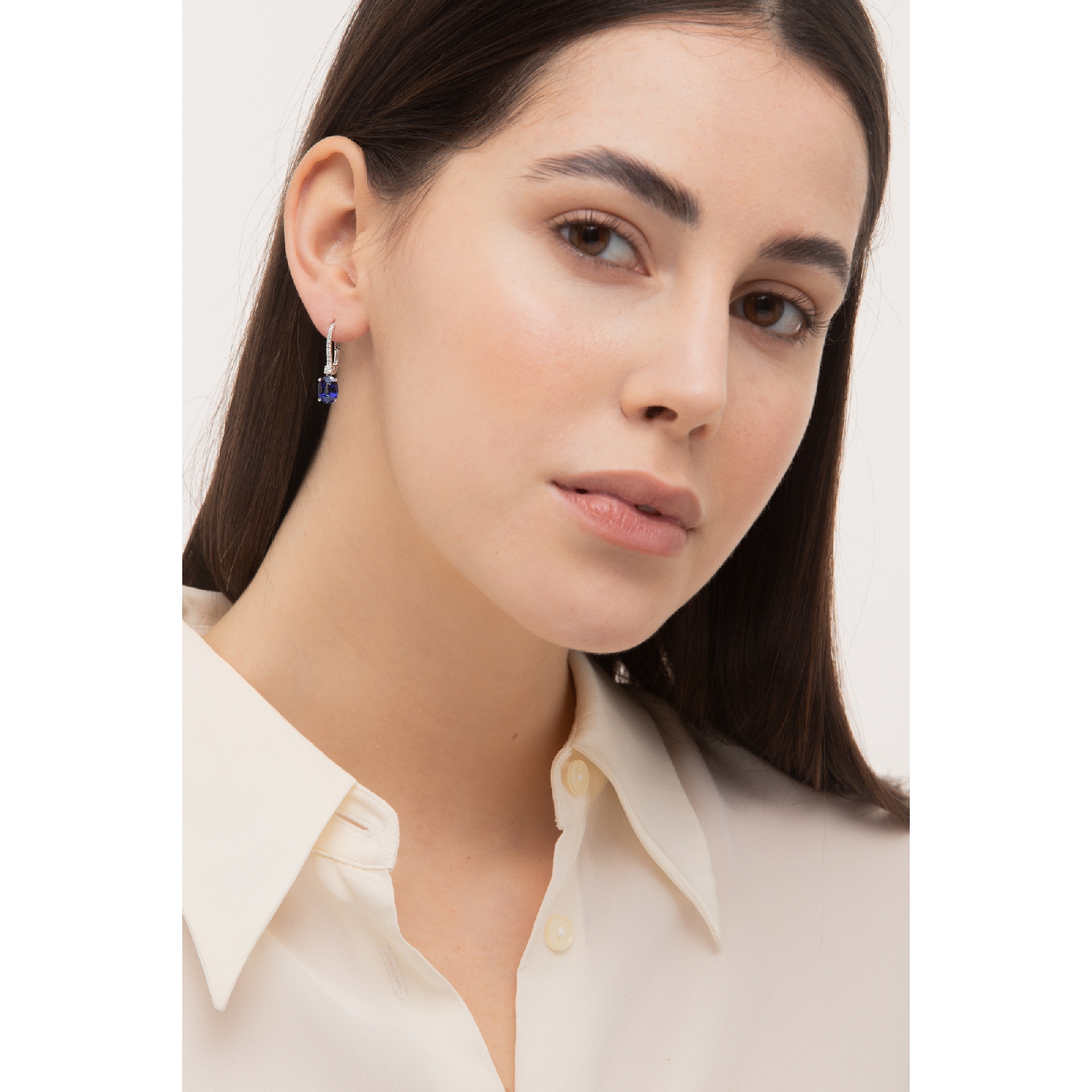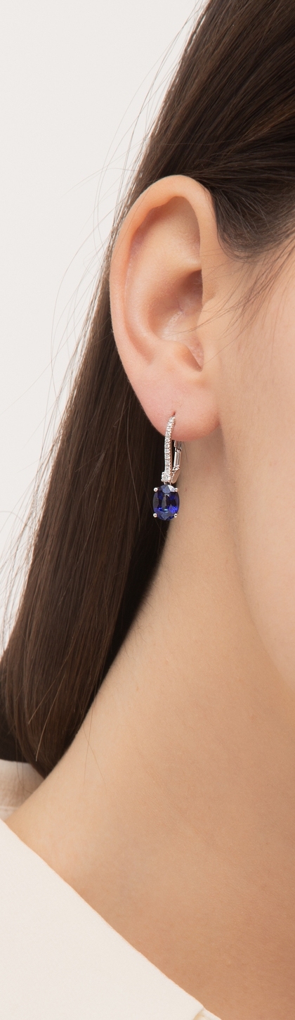 Boucles or blanc 18k avec saphirs ovales et diamants
