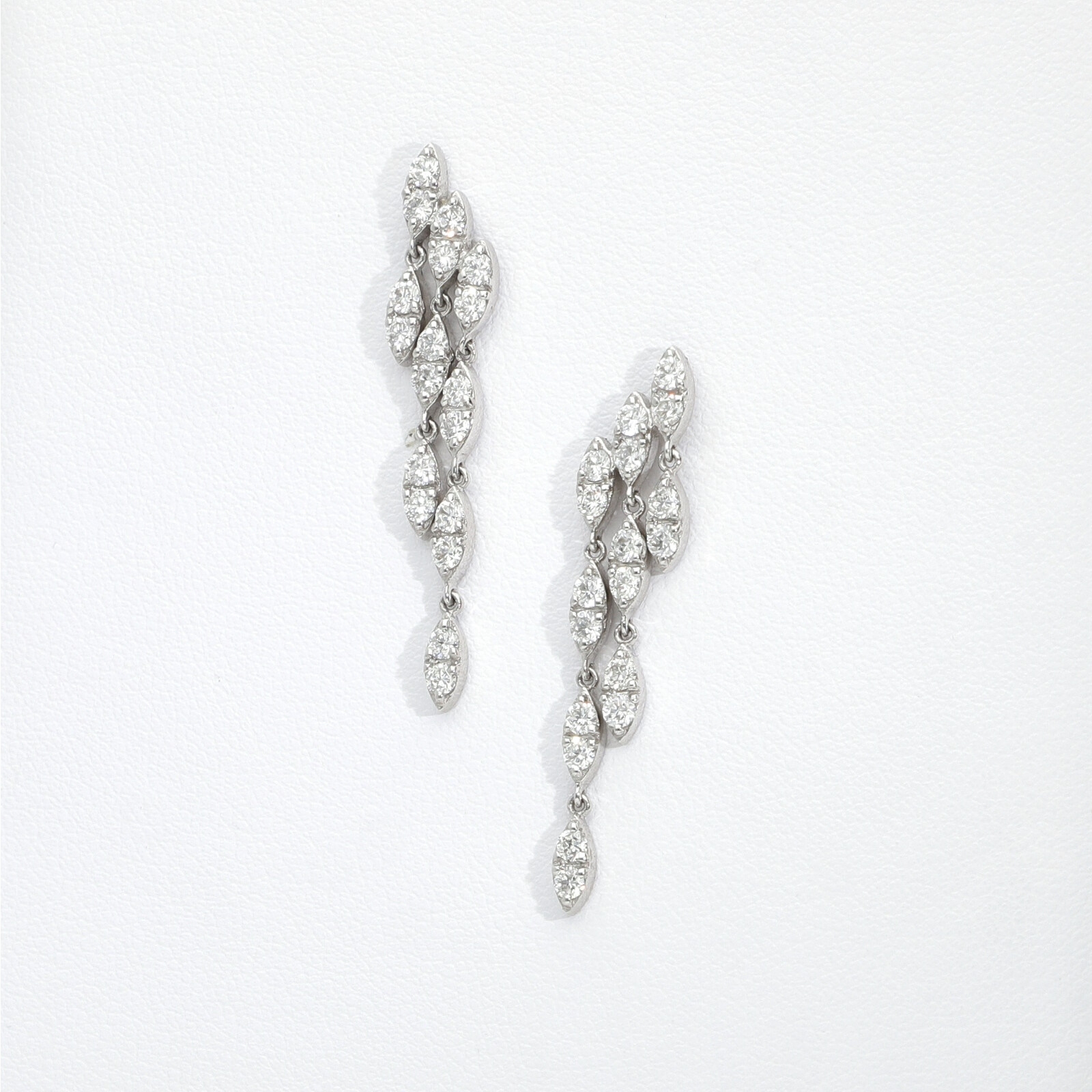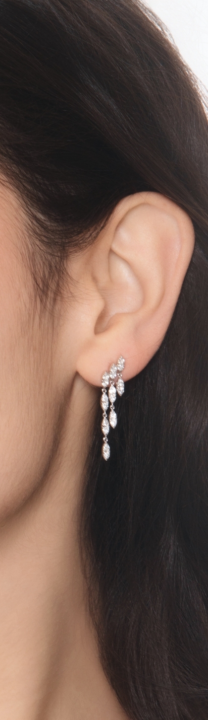 Boucles pendantes trois rangs or blanc 18k avec diamants