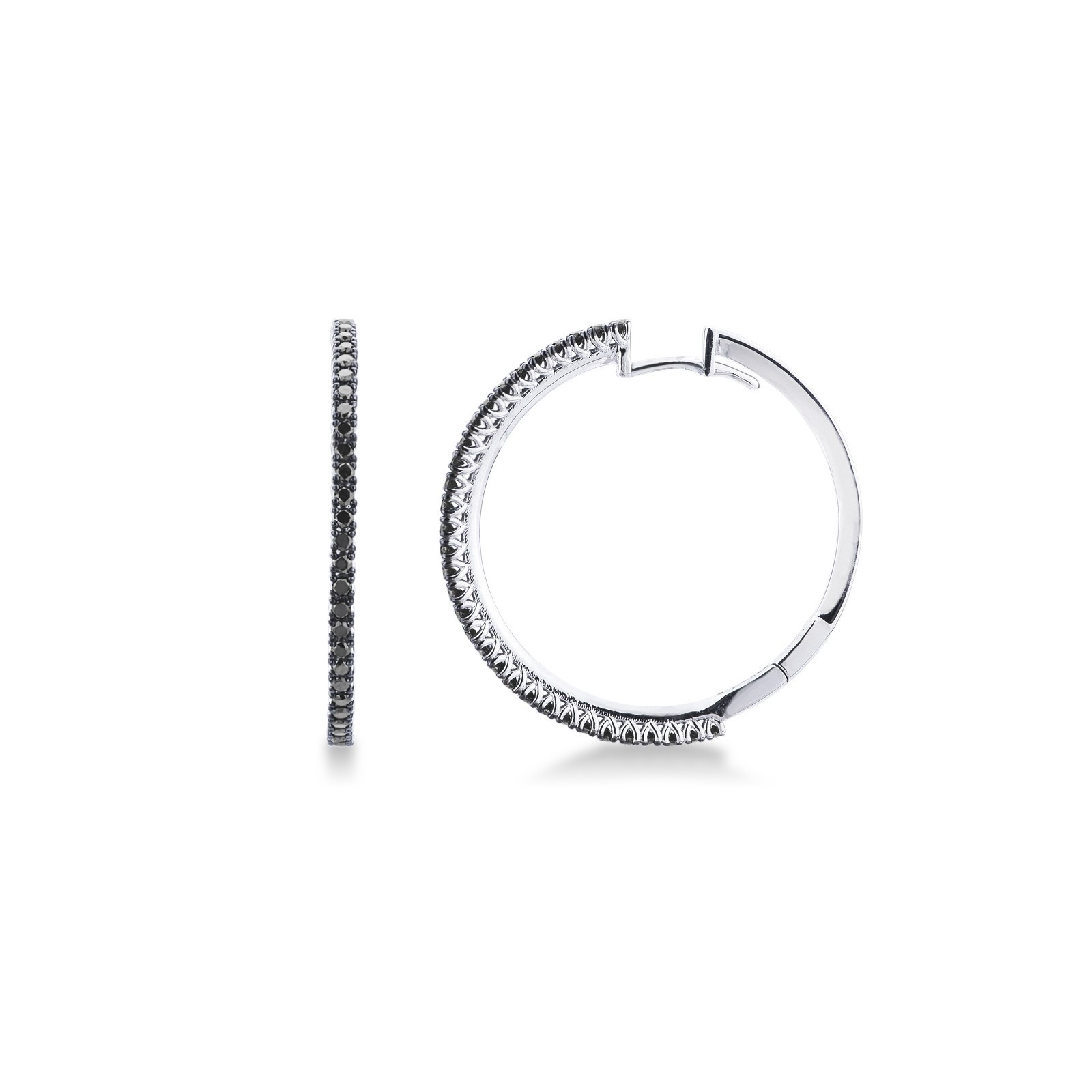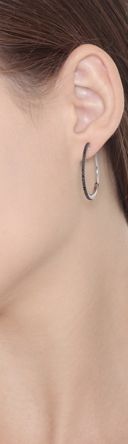 Boucles d'oreilles cercle en or blanc 18 carats avec diamants noirs