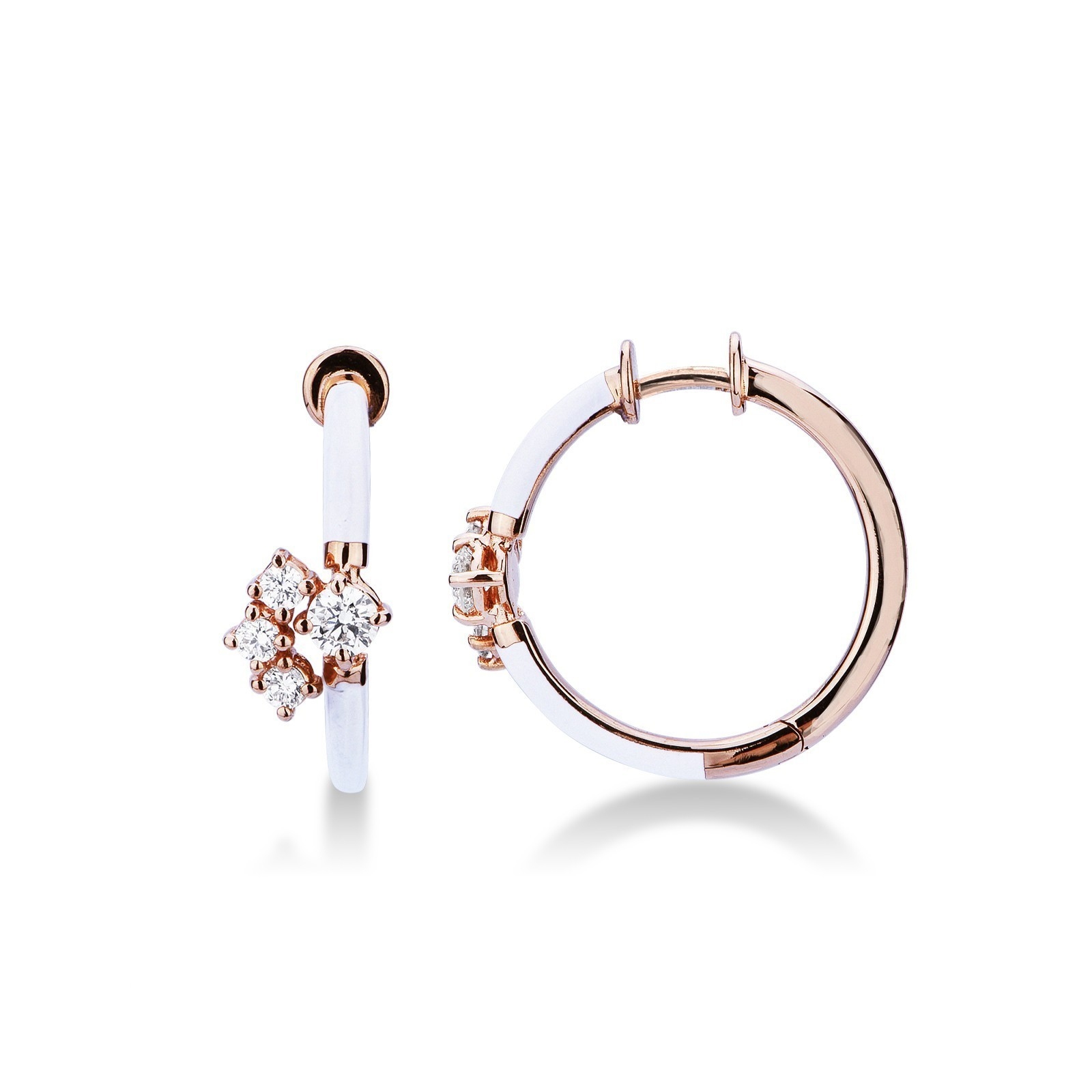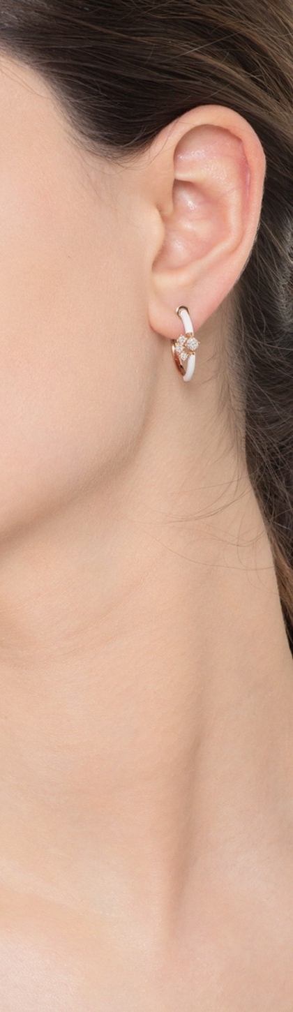 Boucles d’oreilles créoles en or rose 18k émaillées blanc avec diamants