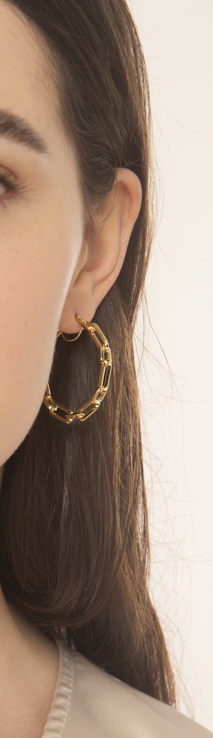 Boucles d'oreilles créoles paper clip en or jaune 18k