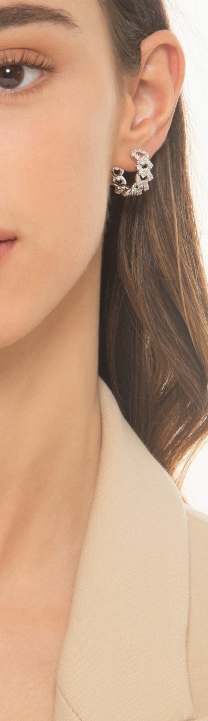 Boucles d oreilles Cuban Link en or blanc 18k avec diamants