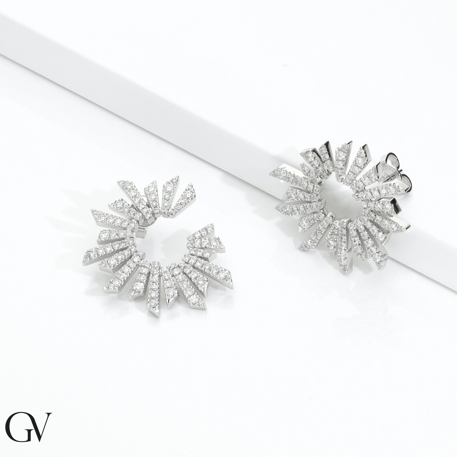 Boucles d'oreilles design avec diamants en or blanc 18k