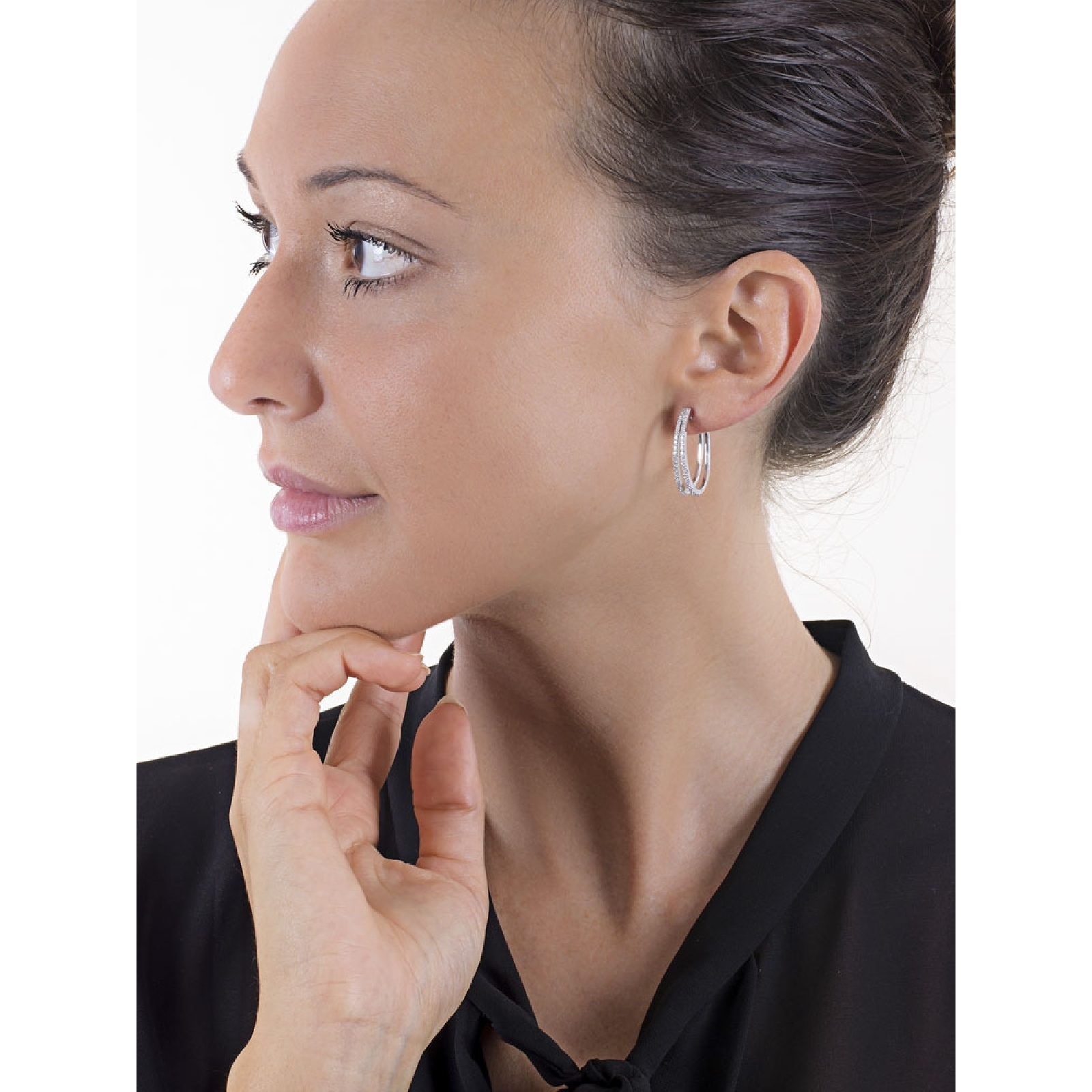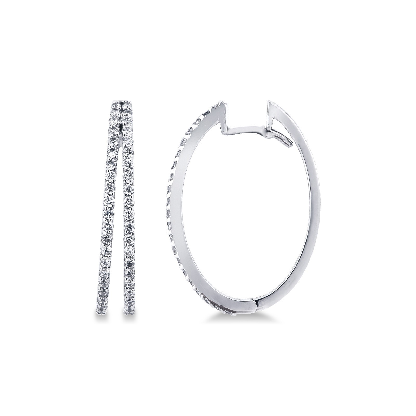 Boucles d'oreilles ovales à 2 rangées en or blanc 18k avec diamants