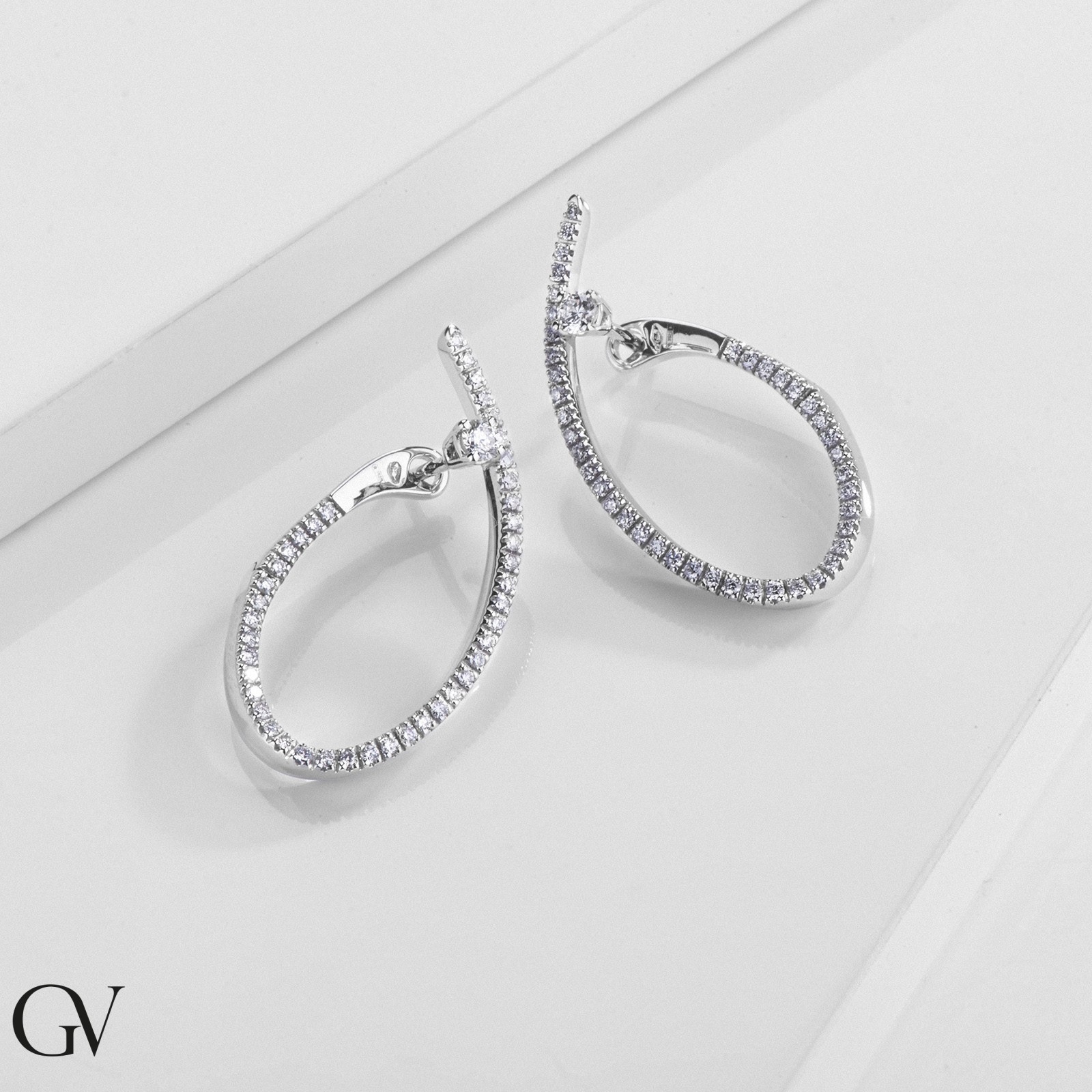 Boucles d’oreilles ovales en or blanc 18k avec diamants brillants
