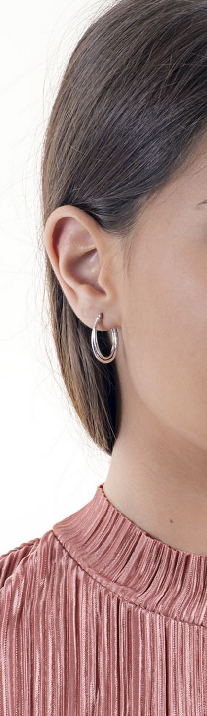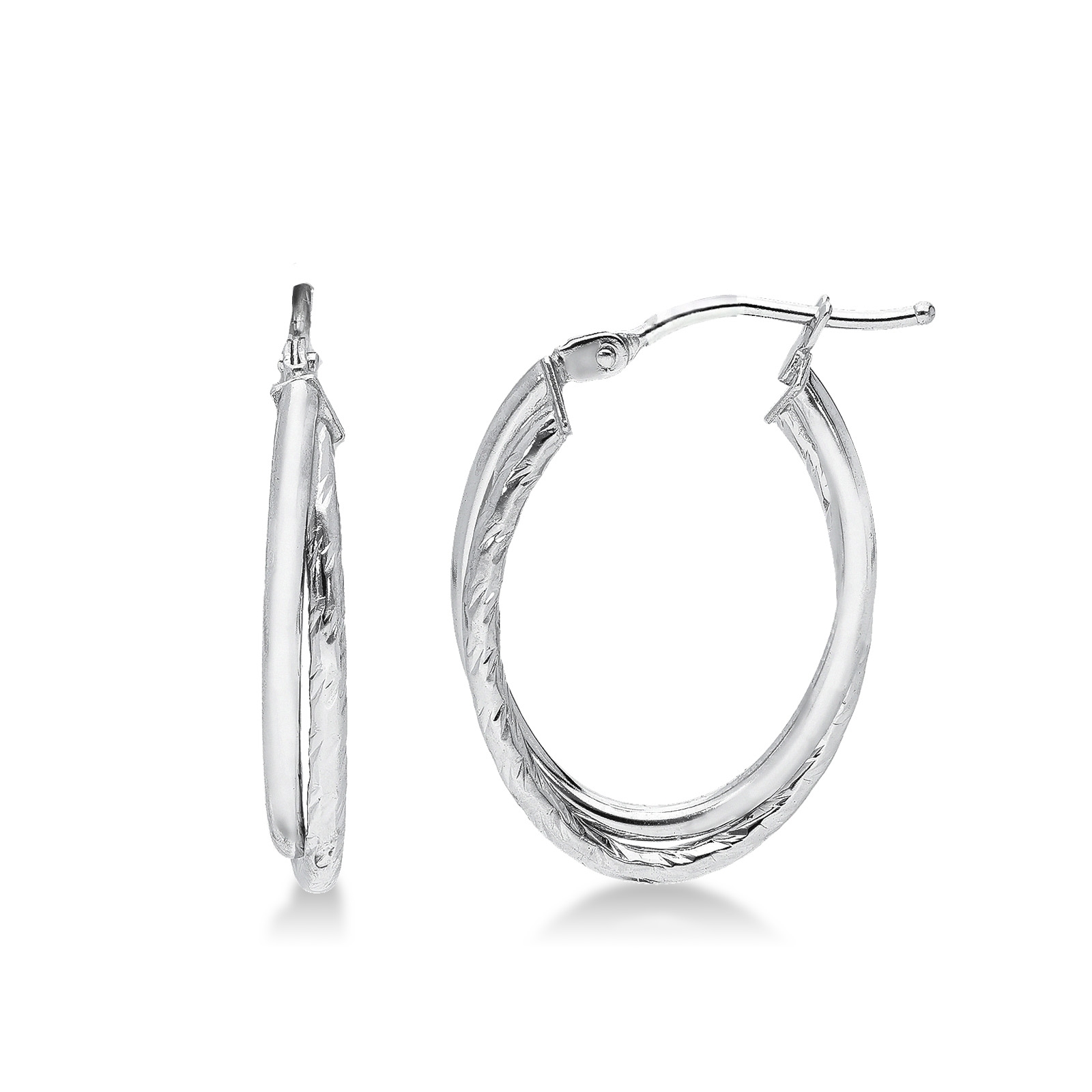 Boucles d'oreilles ovales en or blanc 18k poli et satiné