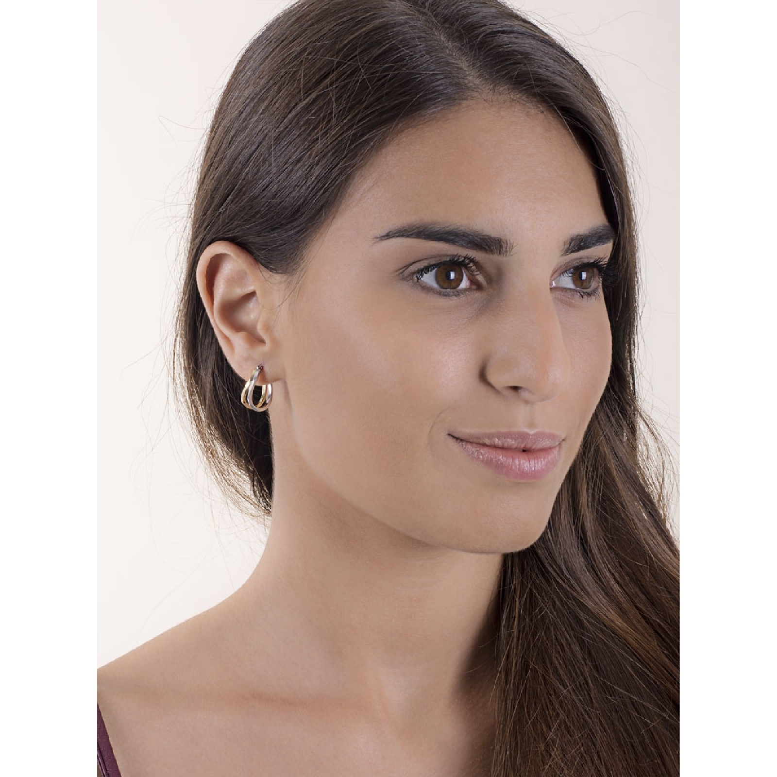 Boucles d’oreilles ovales en or blanc et jaune 18k