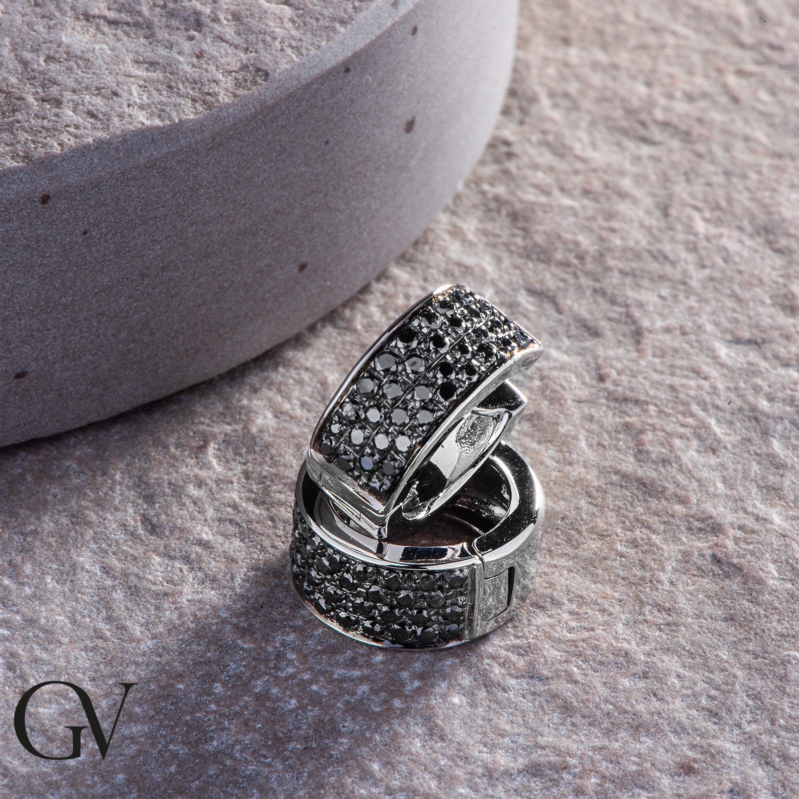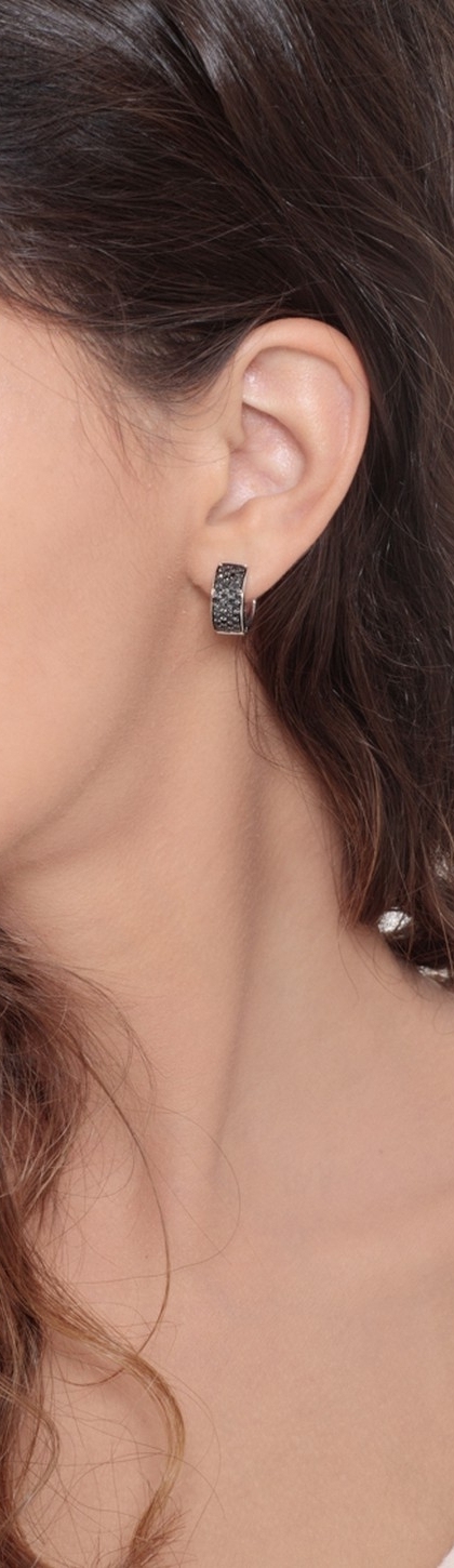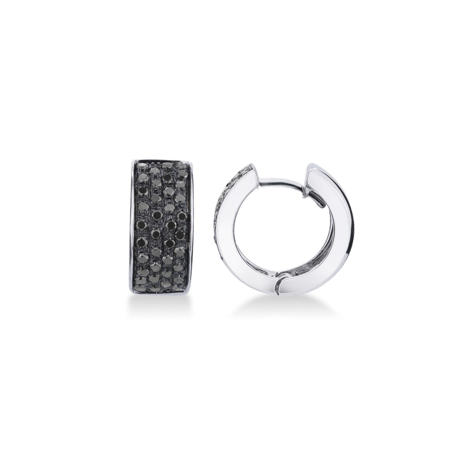 Créoles en or blanc 18k avec pavé de diamants noirs