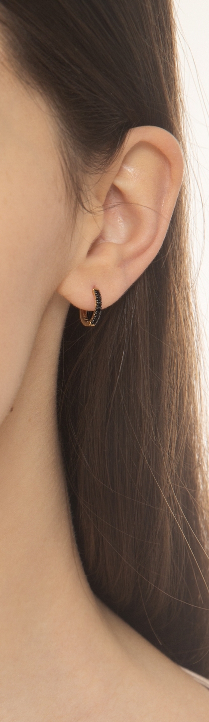 Créoles en or jaune 18k avec zircons noirs