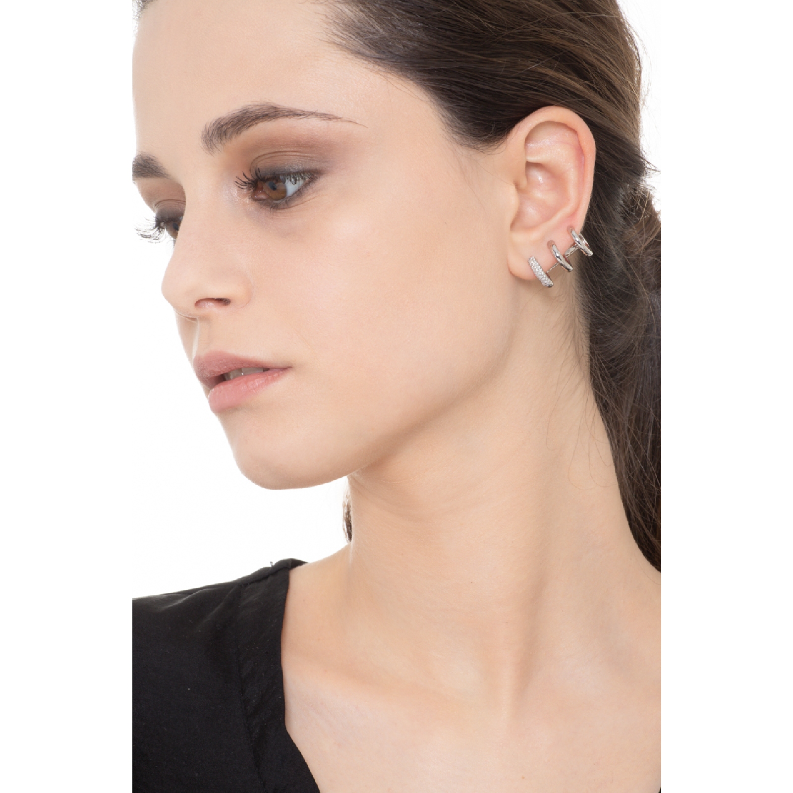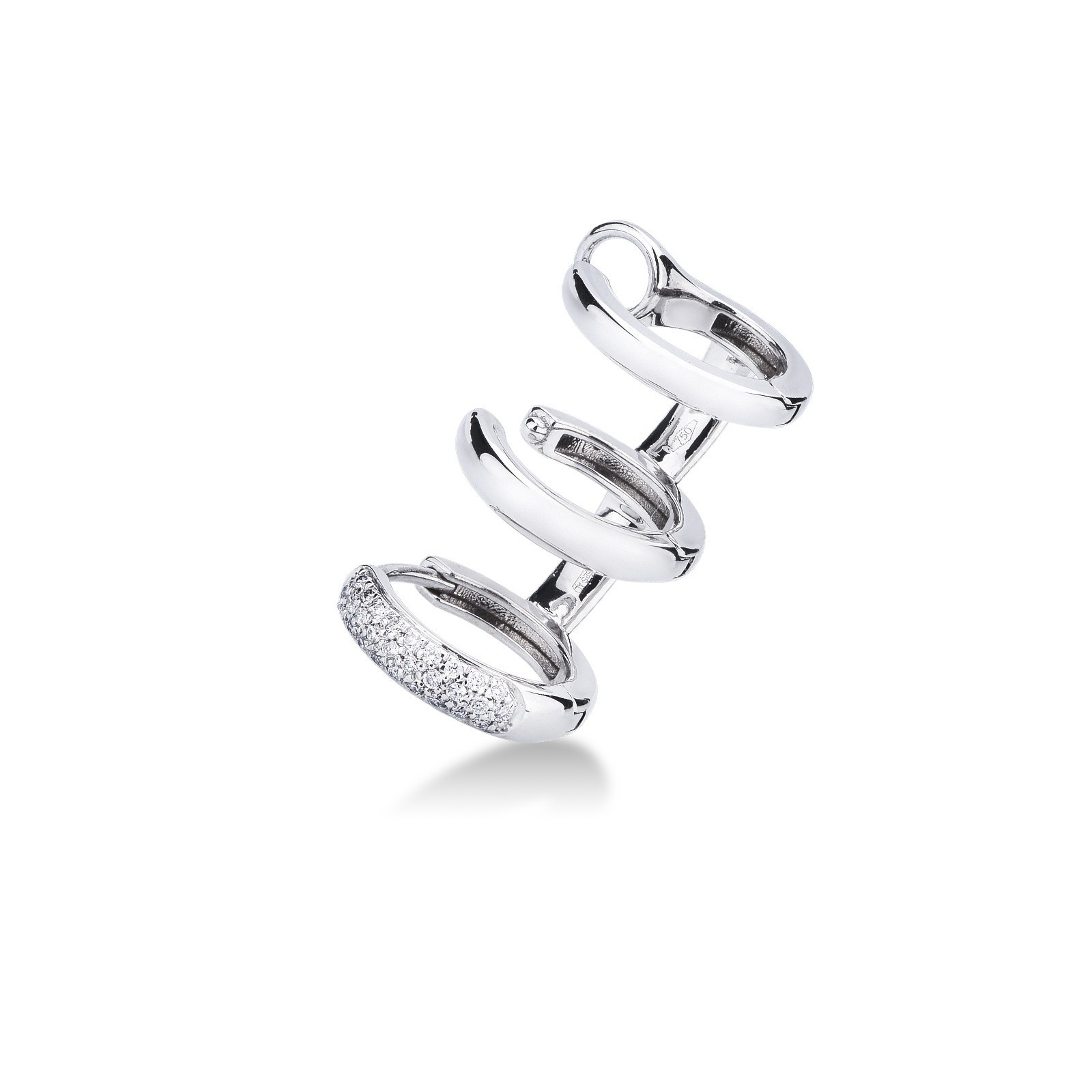 Boucle d'oreille unique en or blanc 18 carats avec diamants, oreille gauche