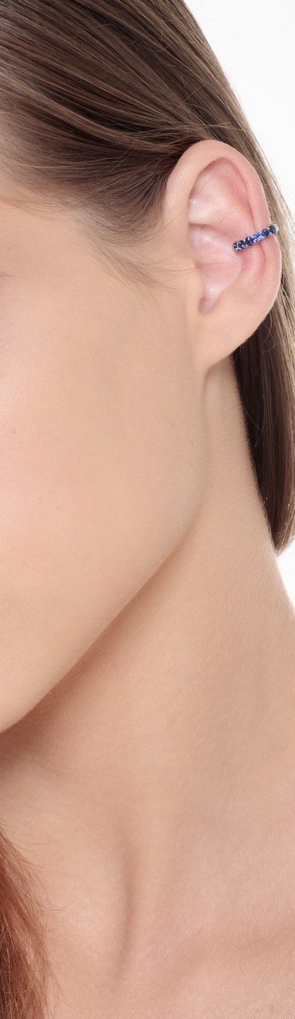Earcuff en or blanc 18 carats incrustée de saphirs bleus