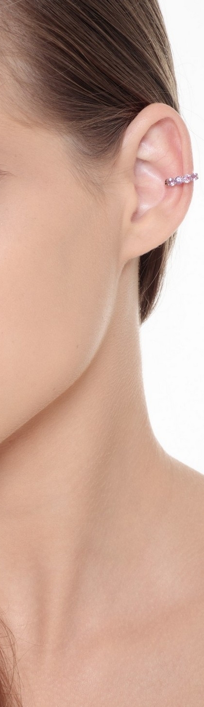 Earcuff en or blanc 18 carats, incrustée de saphirs roses