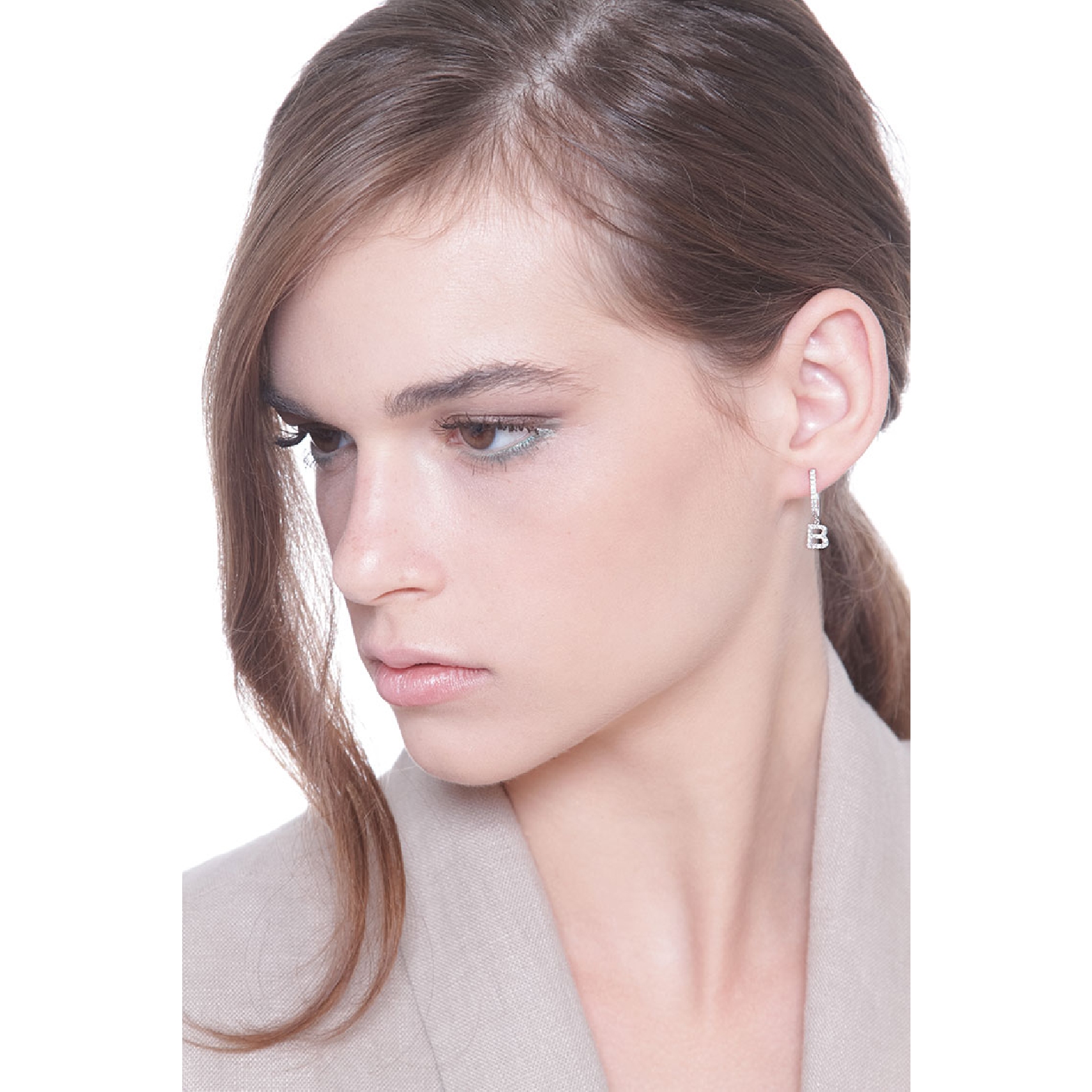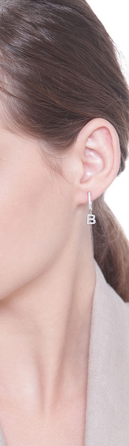 Mono boucle d'oreille en or blanc 18 carats, avec lettre B