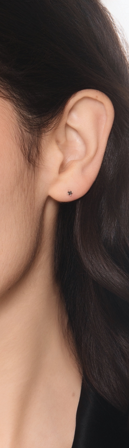 Mono boucle d’oreille en or blanc 18k diamant noir