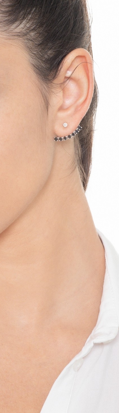 Mono boucle d'oreille en or blanc 18k diamants noirs et blanc