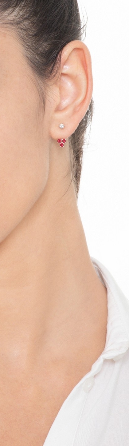 Mono boucle d’oreille en or blanc 18k rubis et diamant