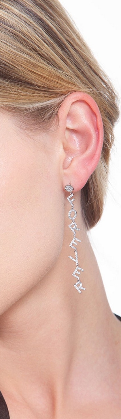 Mono-boucle pendante en or blanc 18 carats, avec le mot FOREVER
