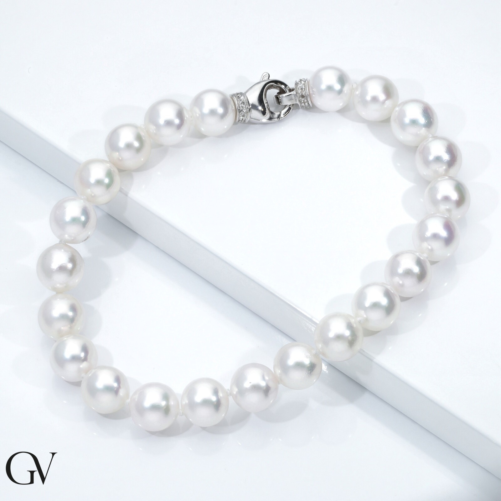 Bracelet de perles japonaises avec fermoir en or blanc 18k et diamants