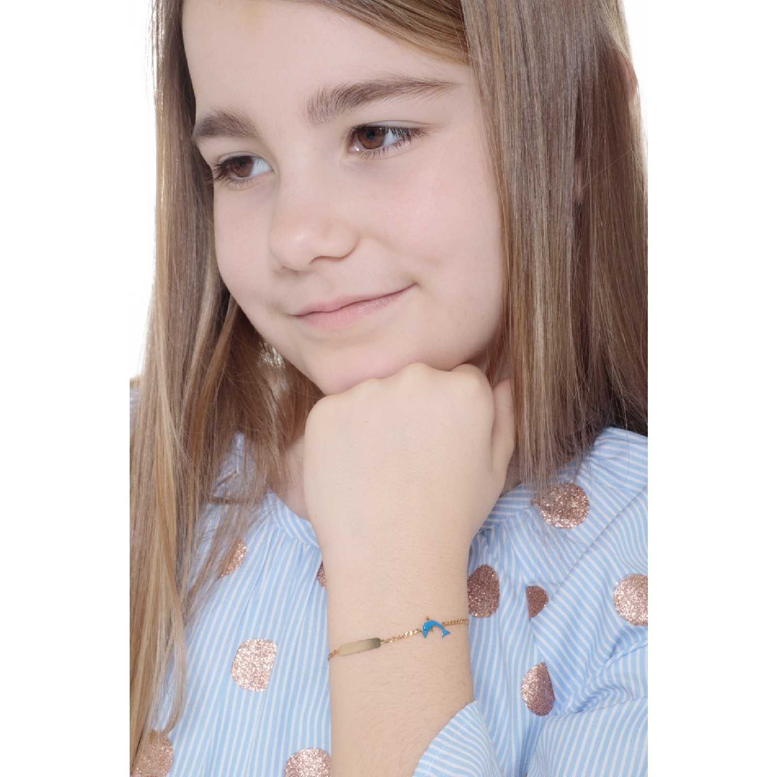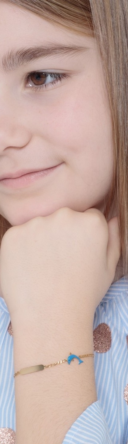 Bracelet garçon or 18k plaque et charm dauphin émaillé longueur réglable 14 cm