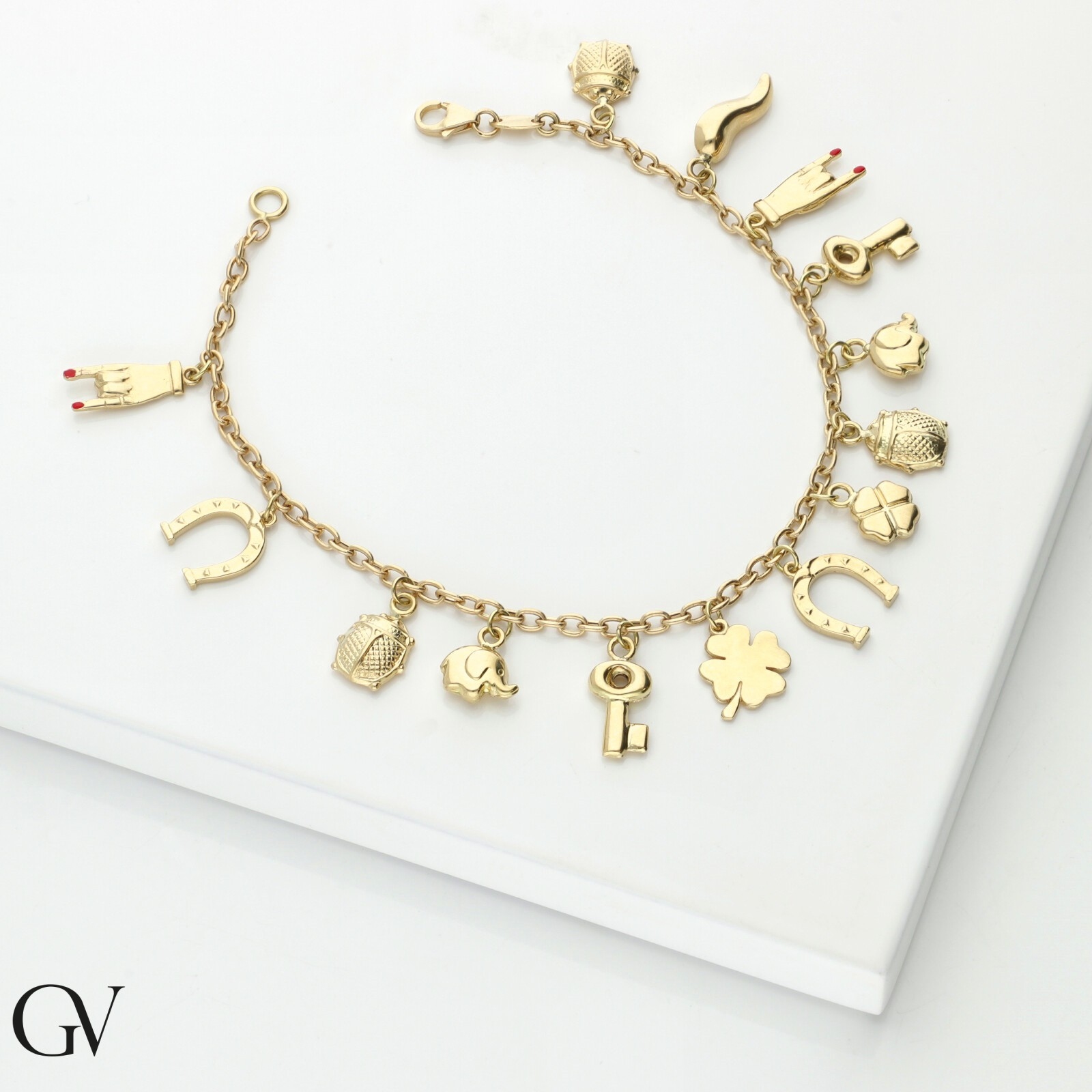 Bracelet porte-bonheur en or jaune 18k orné de charms