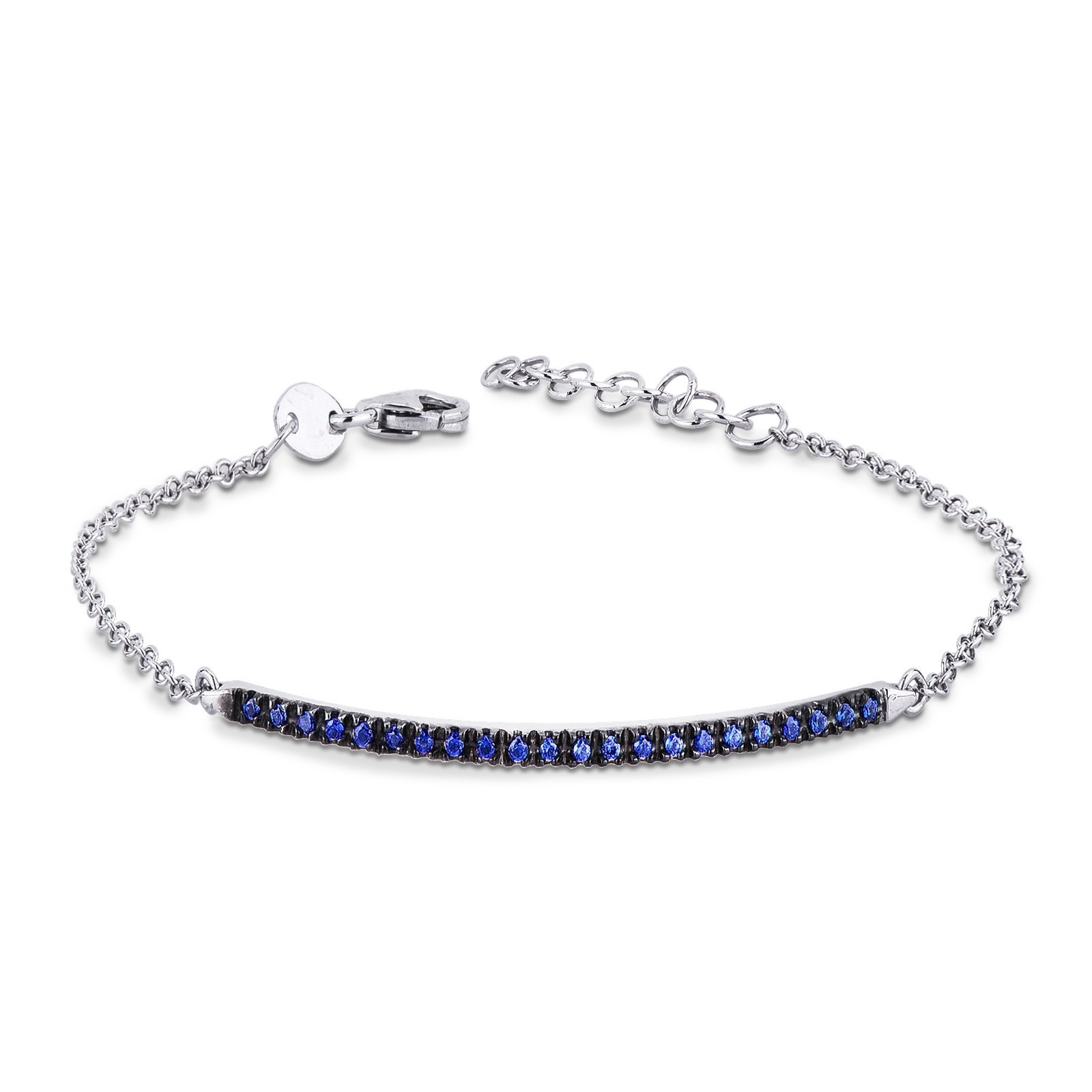 Bracelet barrette à griffes brunies avec saphirs bleu et or blanc 18k