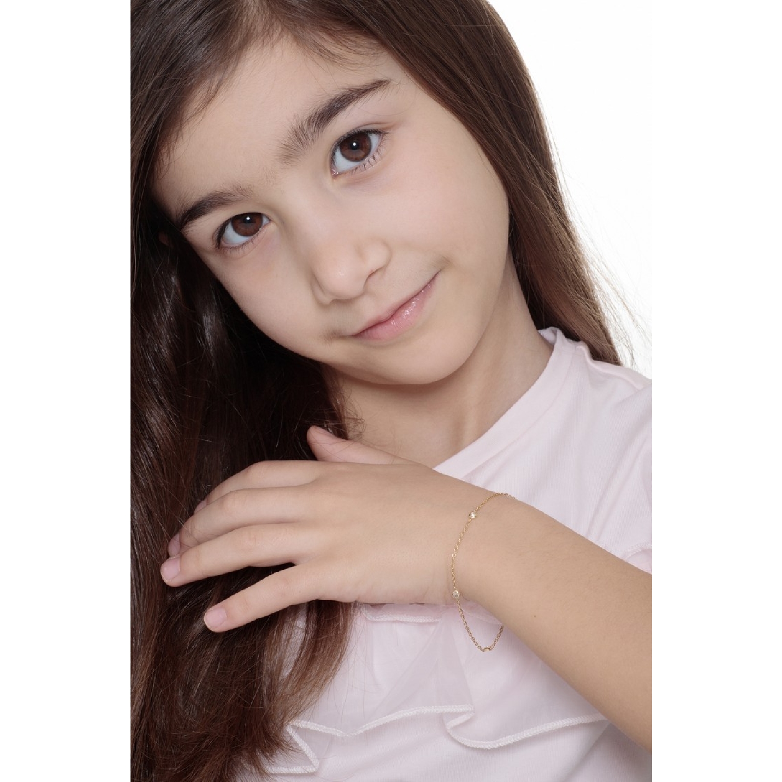 Bracelet fantaisie femme en or jaune 18 carats avec quatre zircons