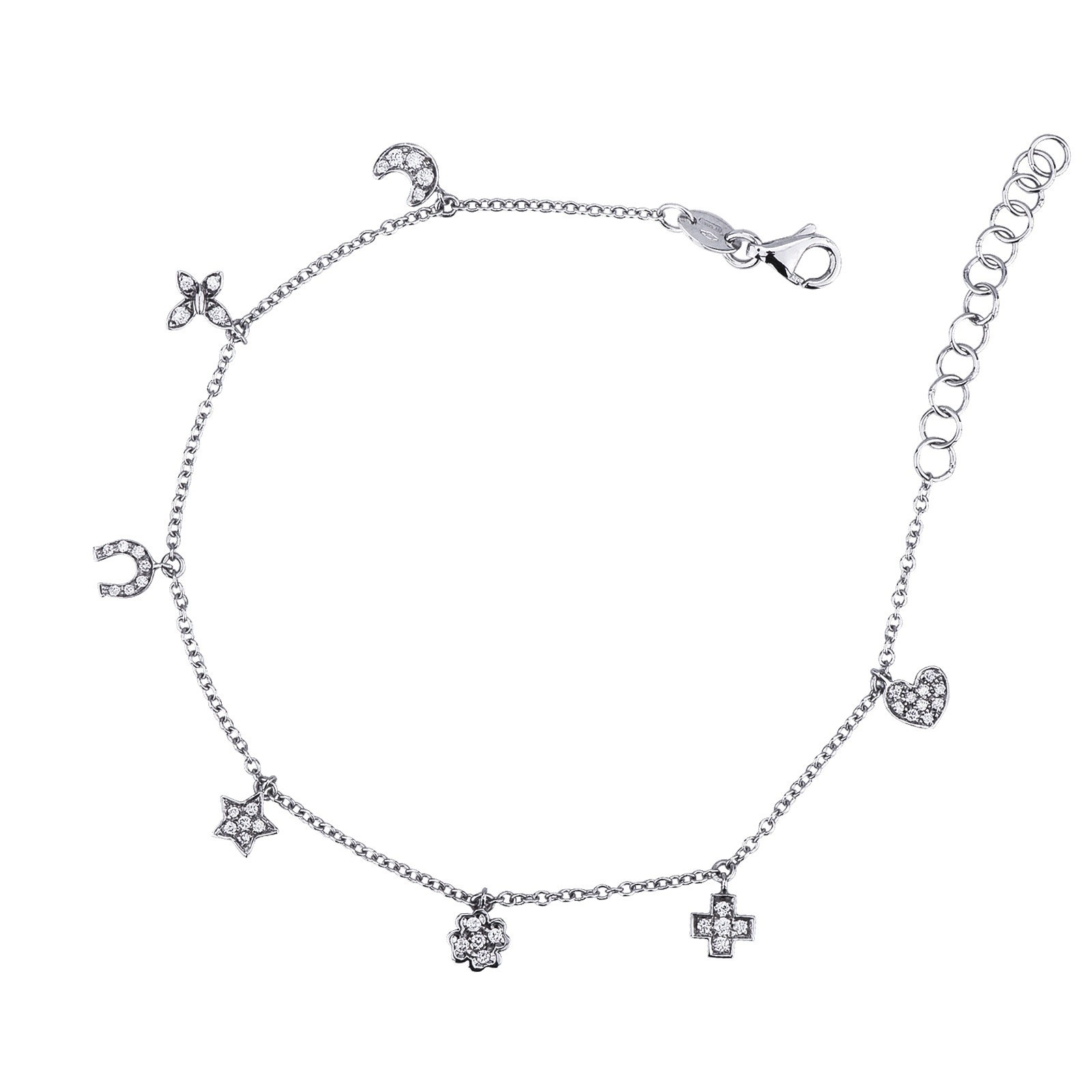 Bracelet en or blanc 18 carats avec des charms en diamants