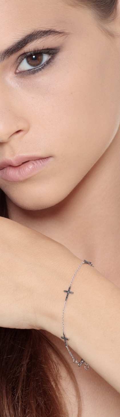 Bracelet en or blanc 18 carats avec des croix en diamants noirs