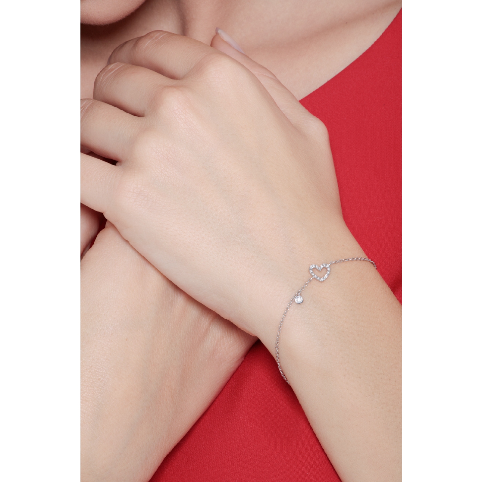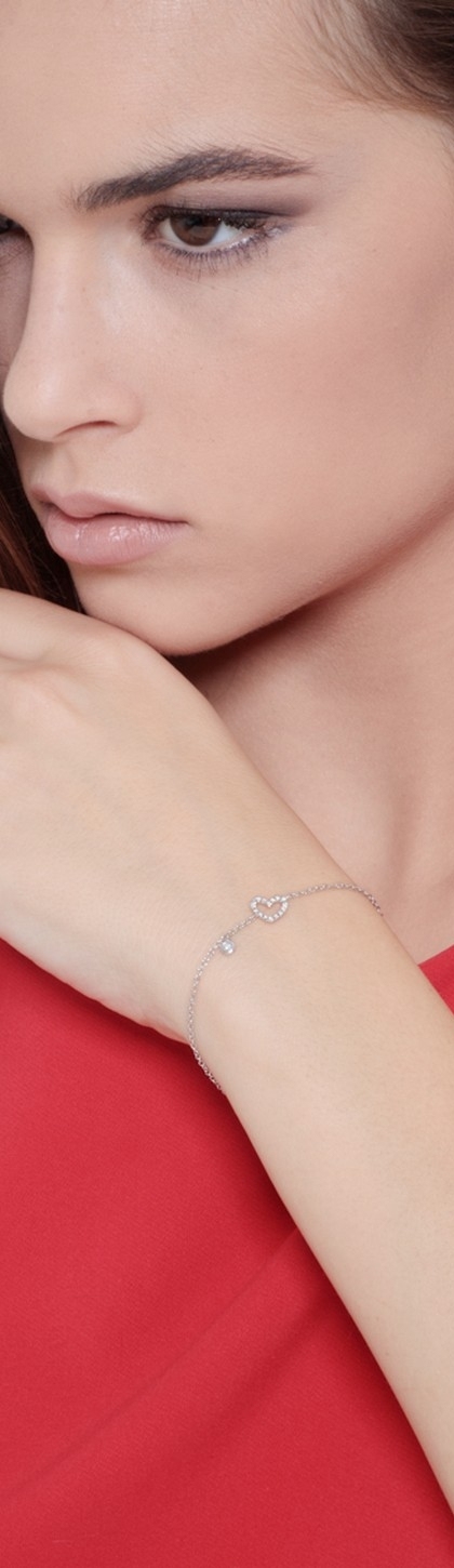 Bracelet en or blanc 18k avec cœur et diamants