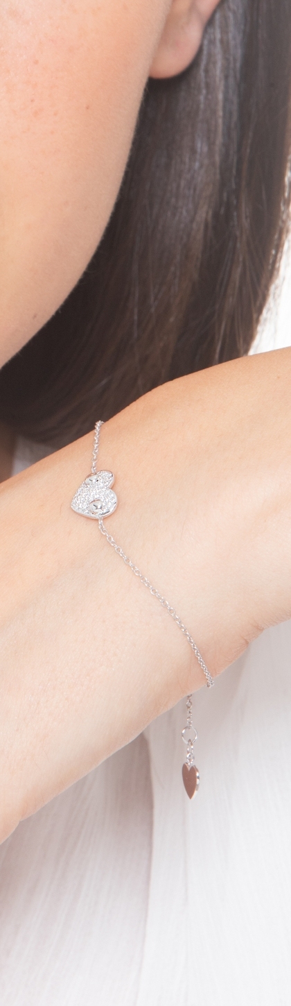 Bracelet en or blanc 18k avec cœur pavé de diamants