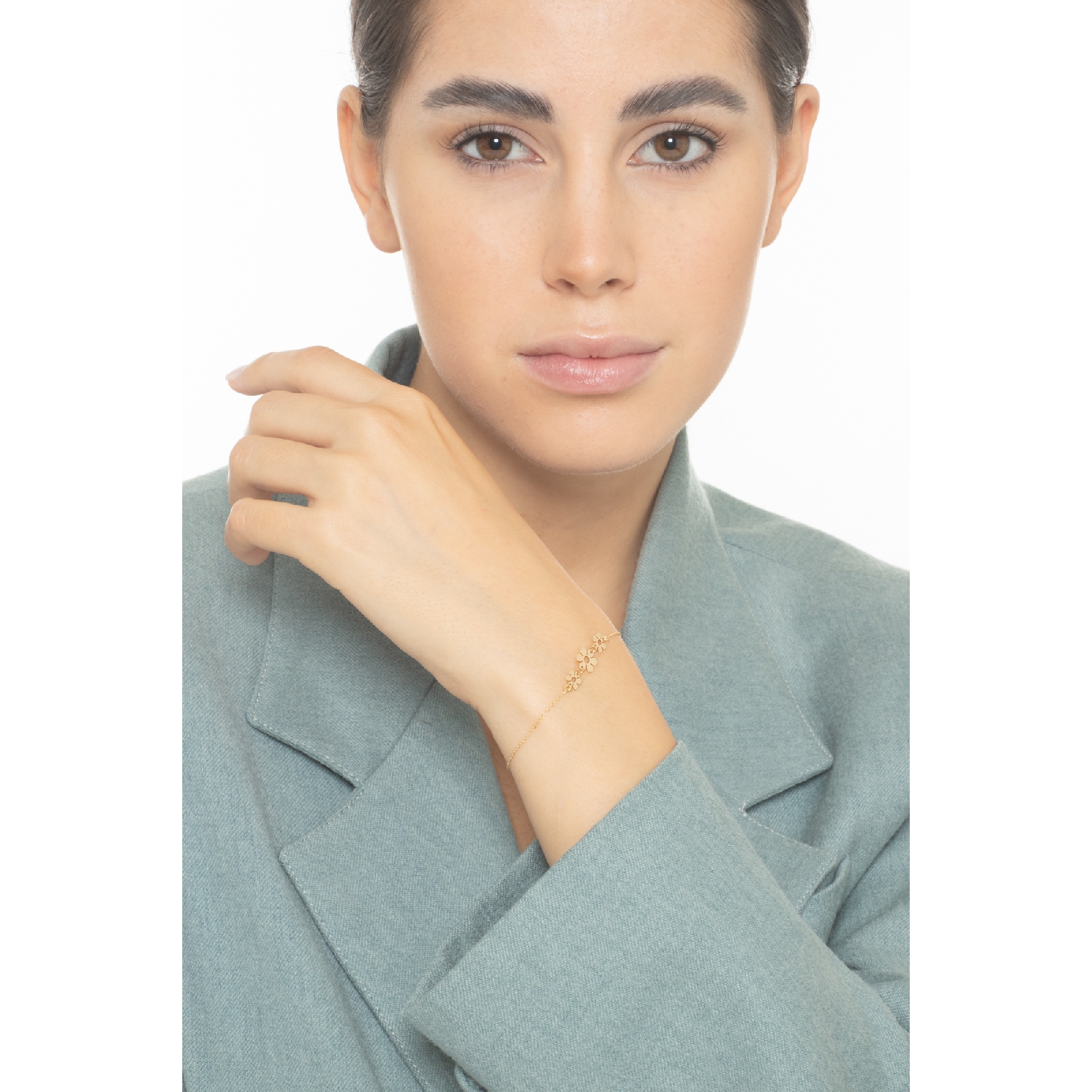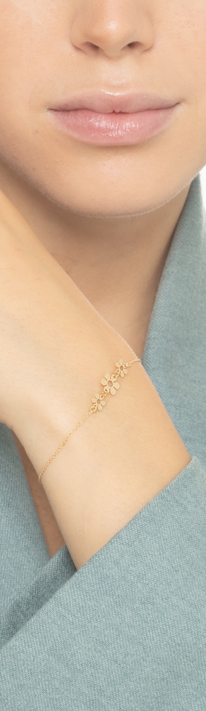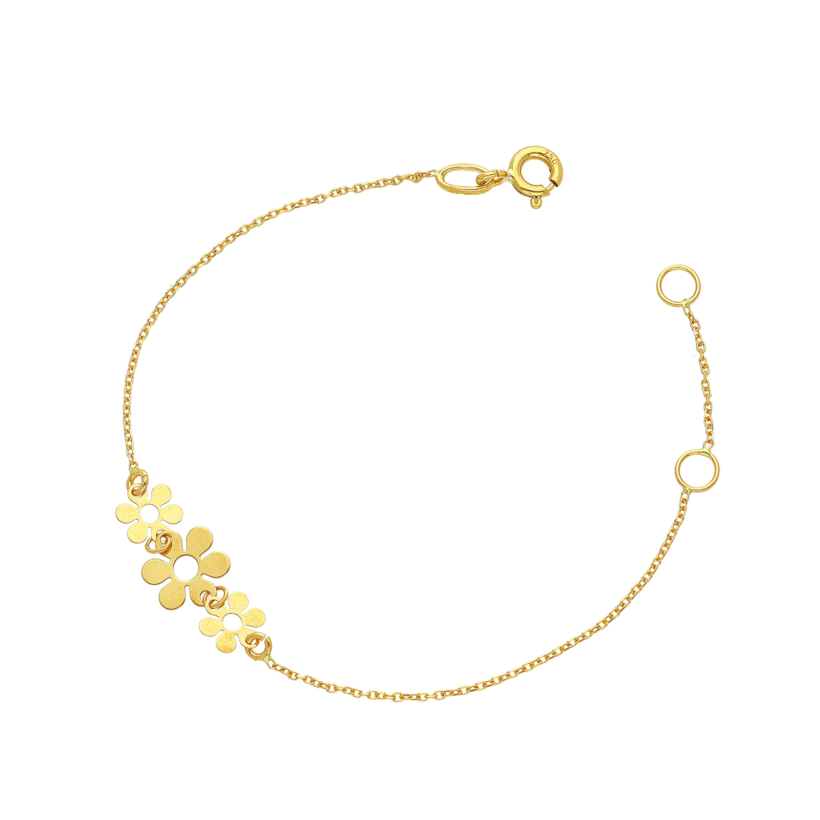 Élégant bracelet en or jaune 18 carats orné de trois fleurs disposées en dégradé.