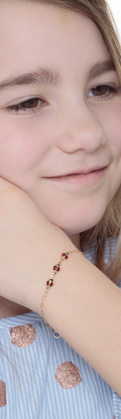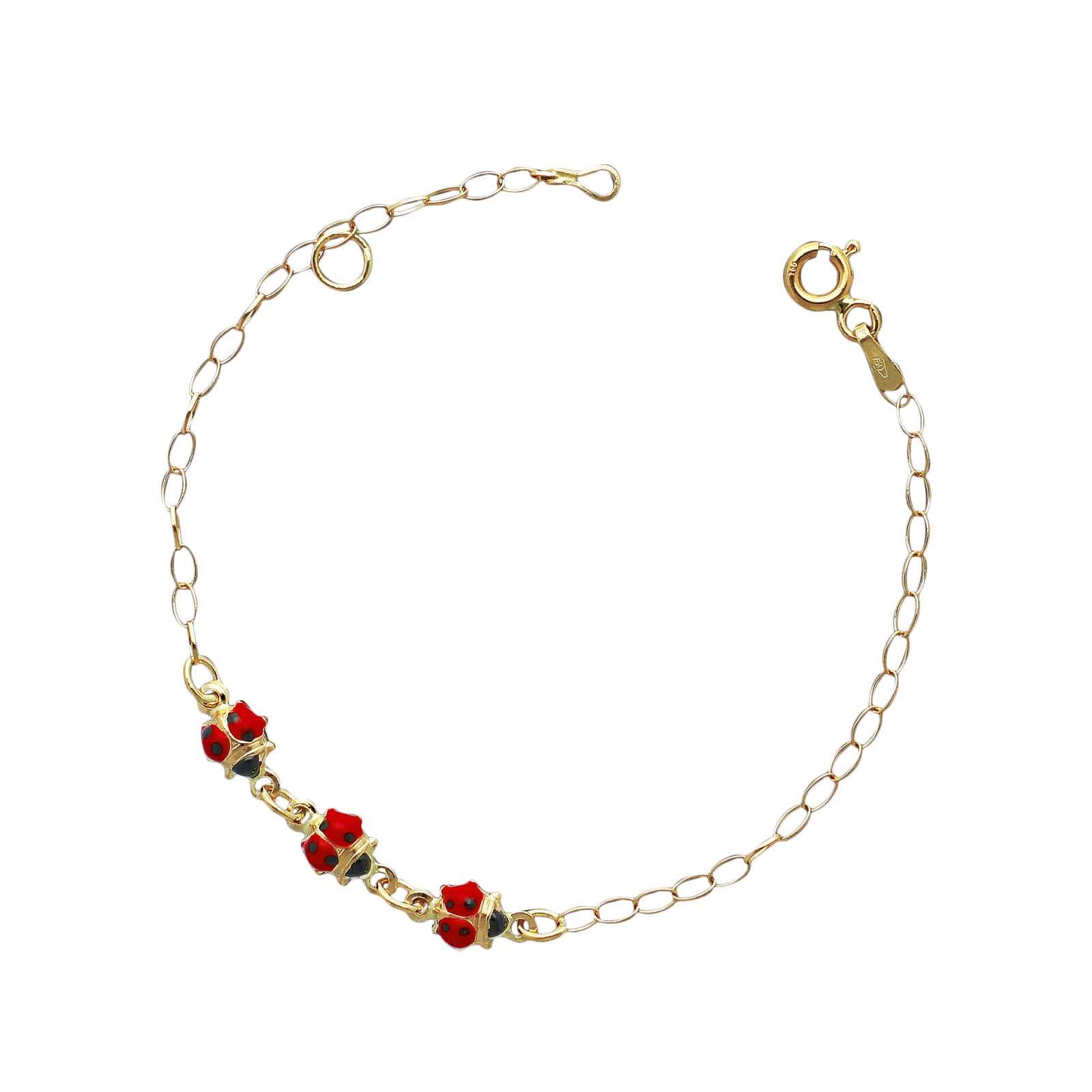 Bracelet enfant avec trois coccinelles émaillées en or jaune 18k