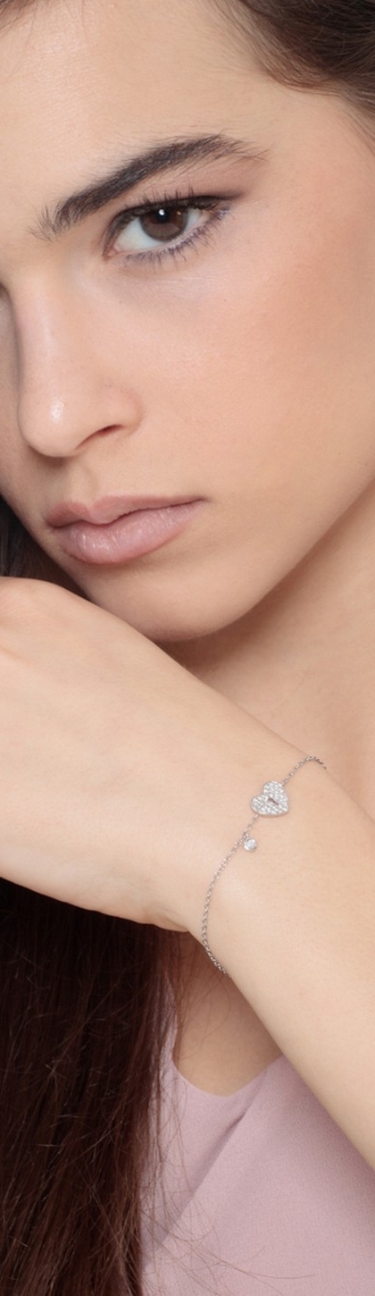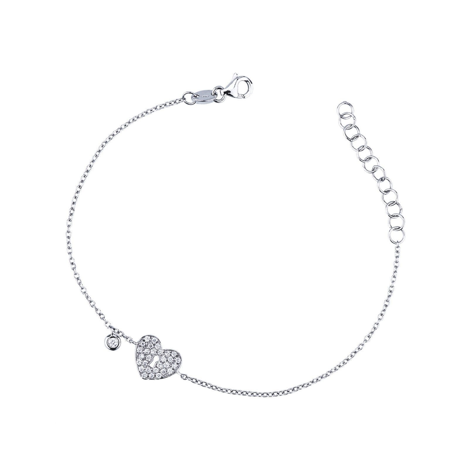Bracelet or blanc 18k cœur cadenas pavé de diamants