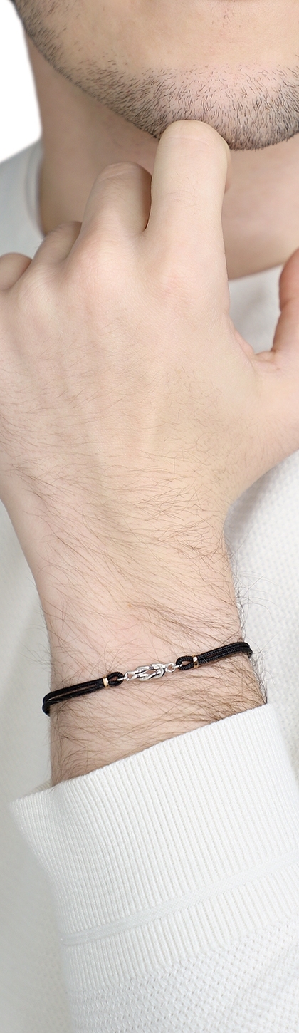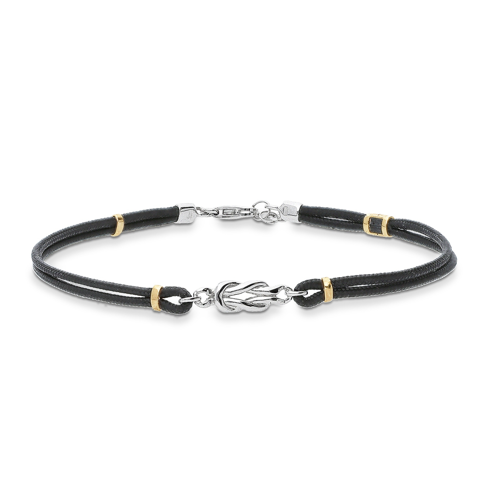 Bracelet tissu noir avec nœud en or blanc et rose 18k