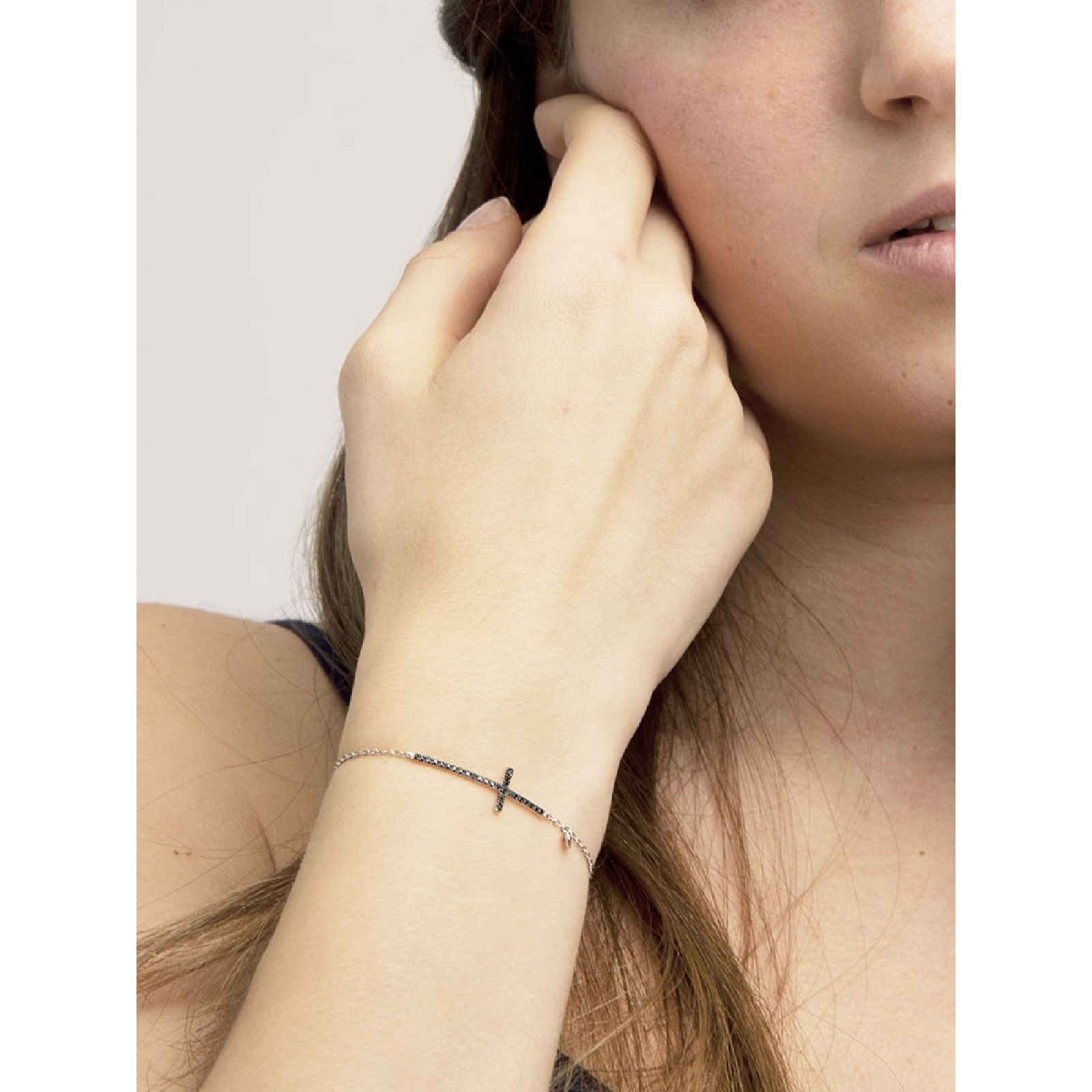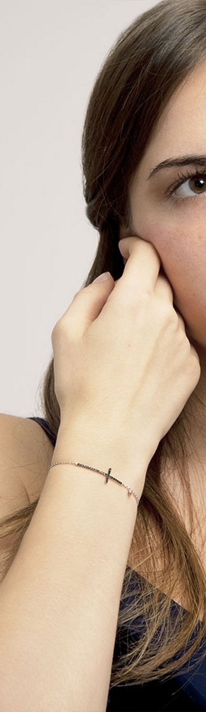 Bracelet croix homme diamants noirs or blanc 18k