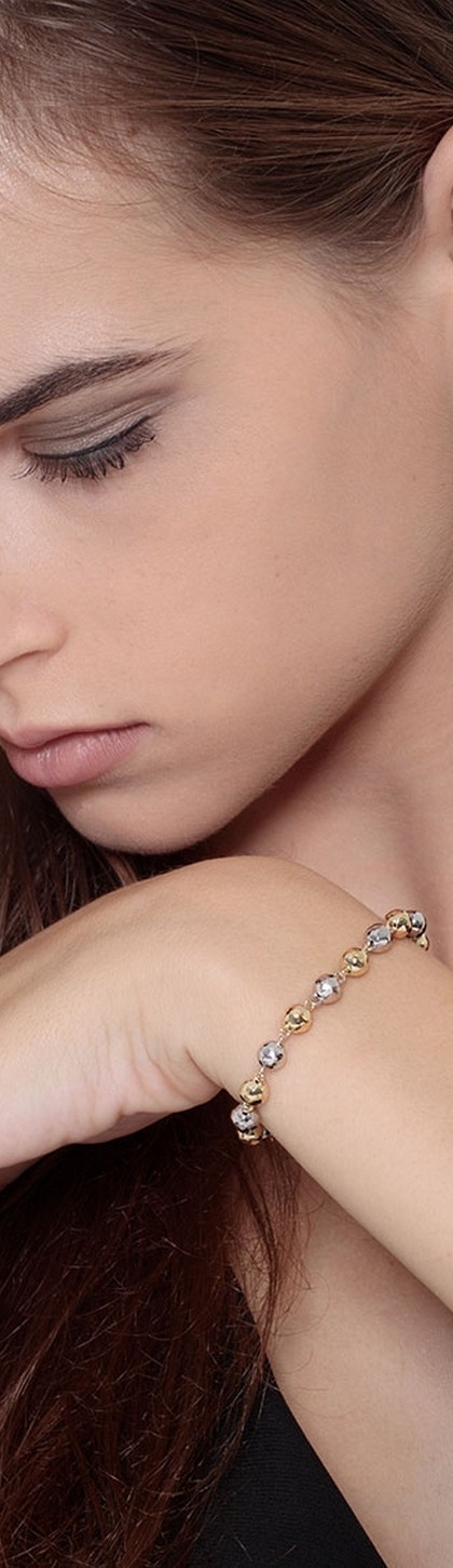 Bracelet femme or jaune et blanc 18k perles diamantées