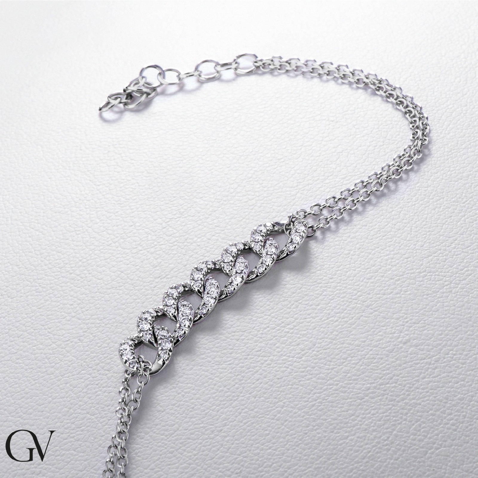 Bracelet à 6 maillons gourmette en or blanc 18k avec des diamants, 19+3 cm