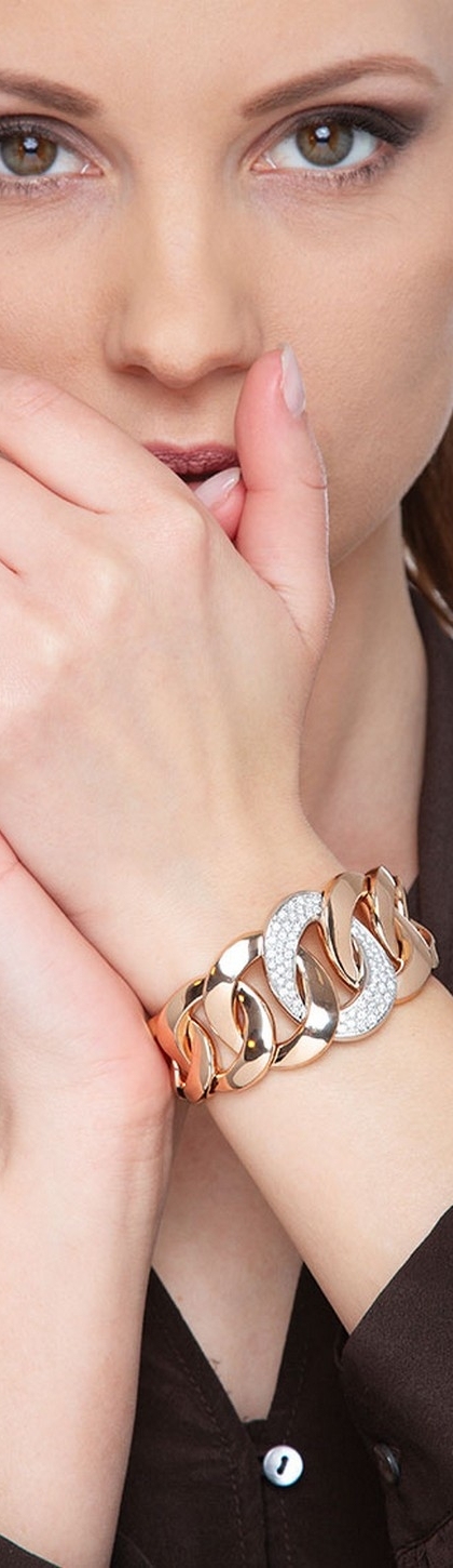 Bracelet à maillons gourmette dégradés en or blanc et rose 18K