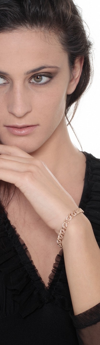 Bracelet gourmette en or rose 18k avec diamants taille brillant, couleur H, pureté VS.