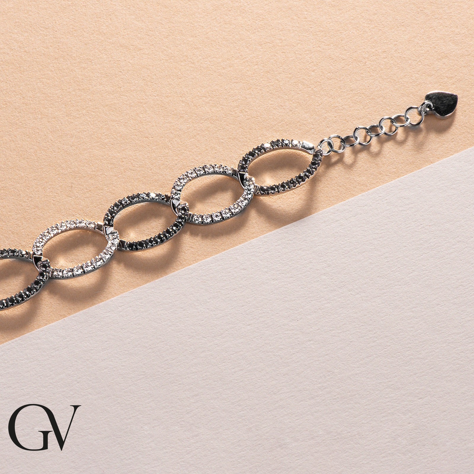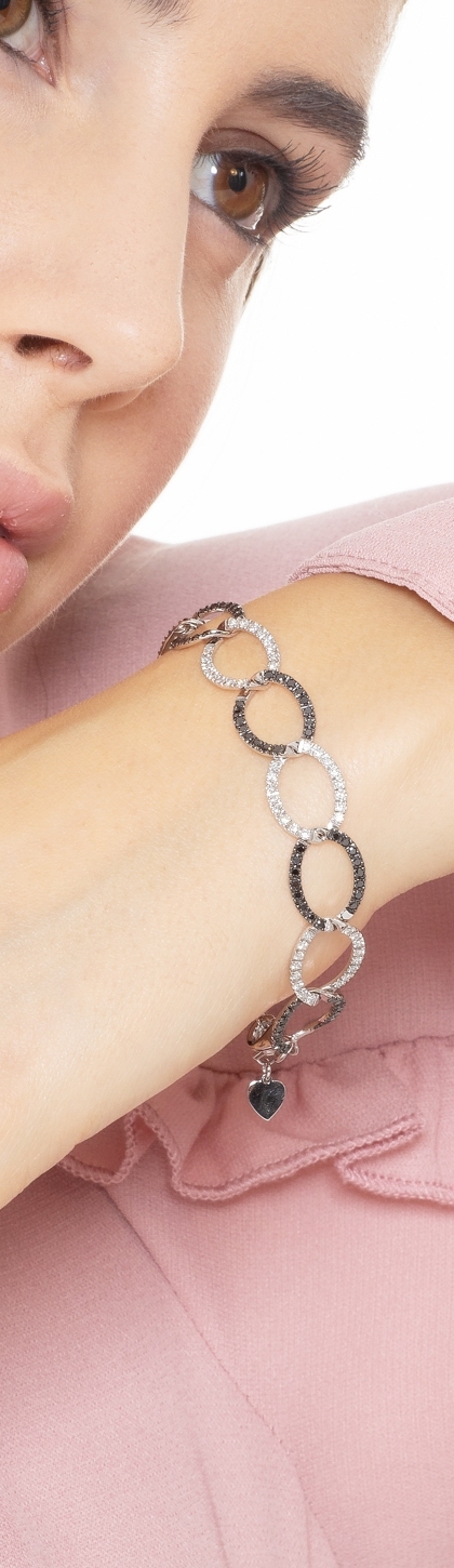 Bracelet ovales en or blanc 18K avec diamants noirs et blancs